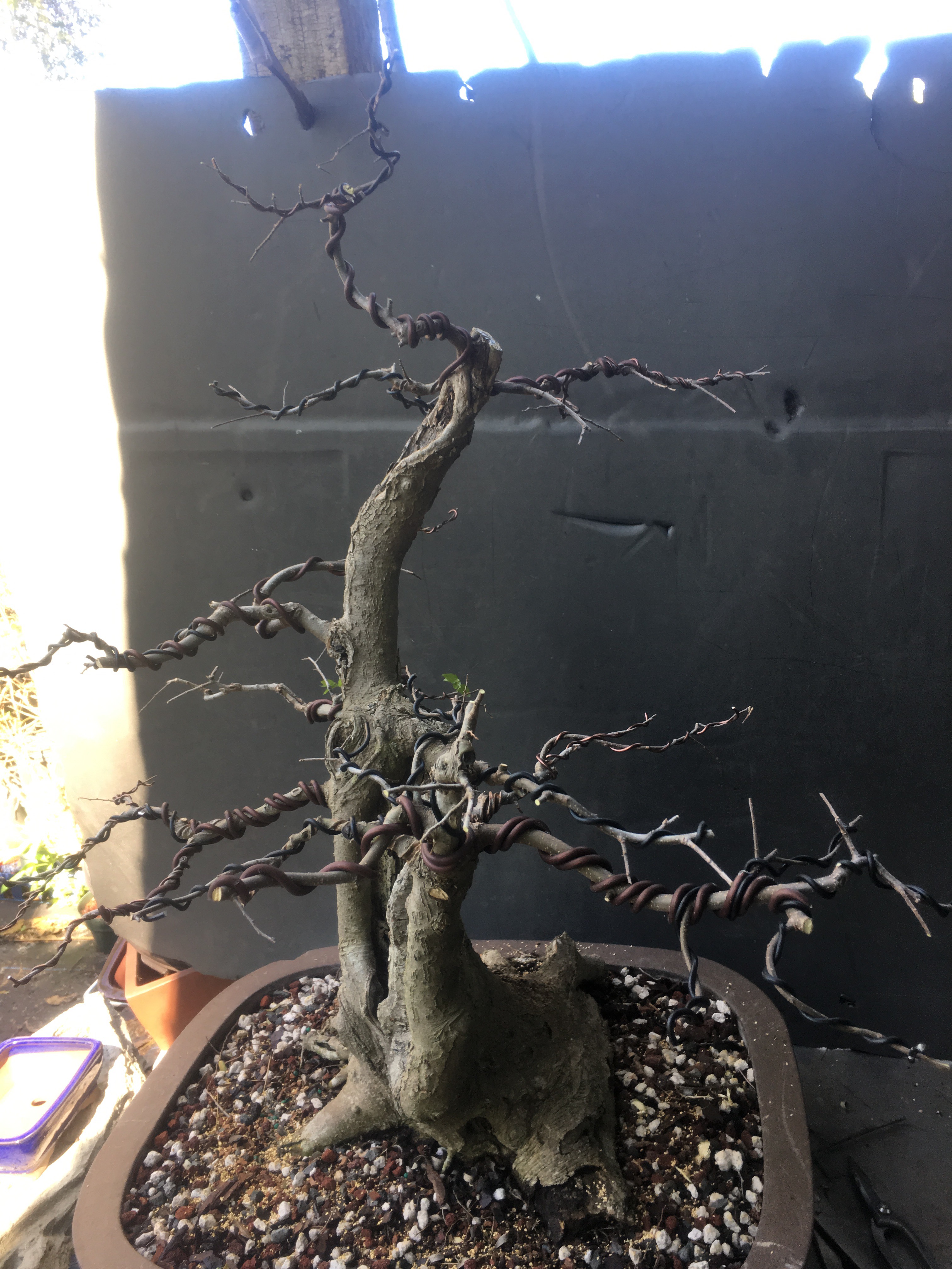 I’m not worried too much about the wire scars. That’ll make the branches even more mean looking.