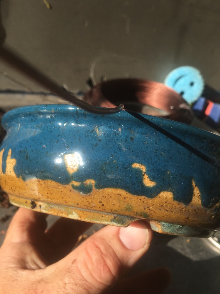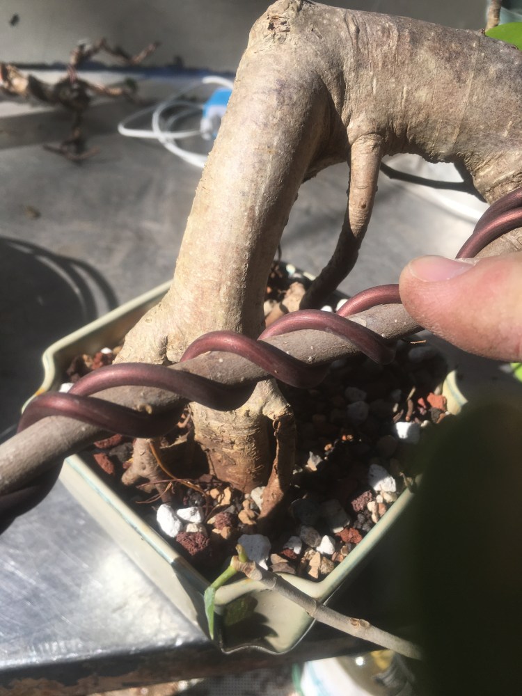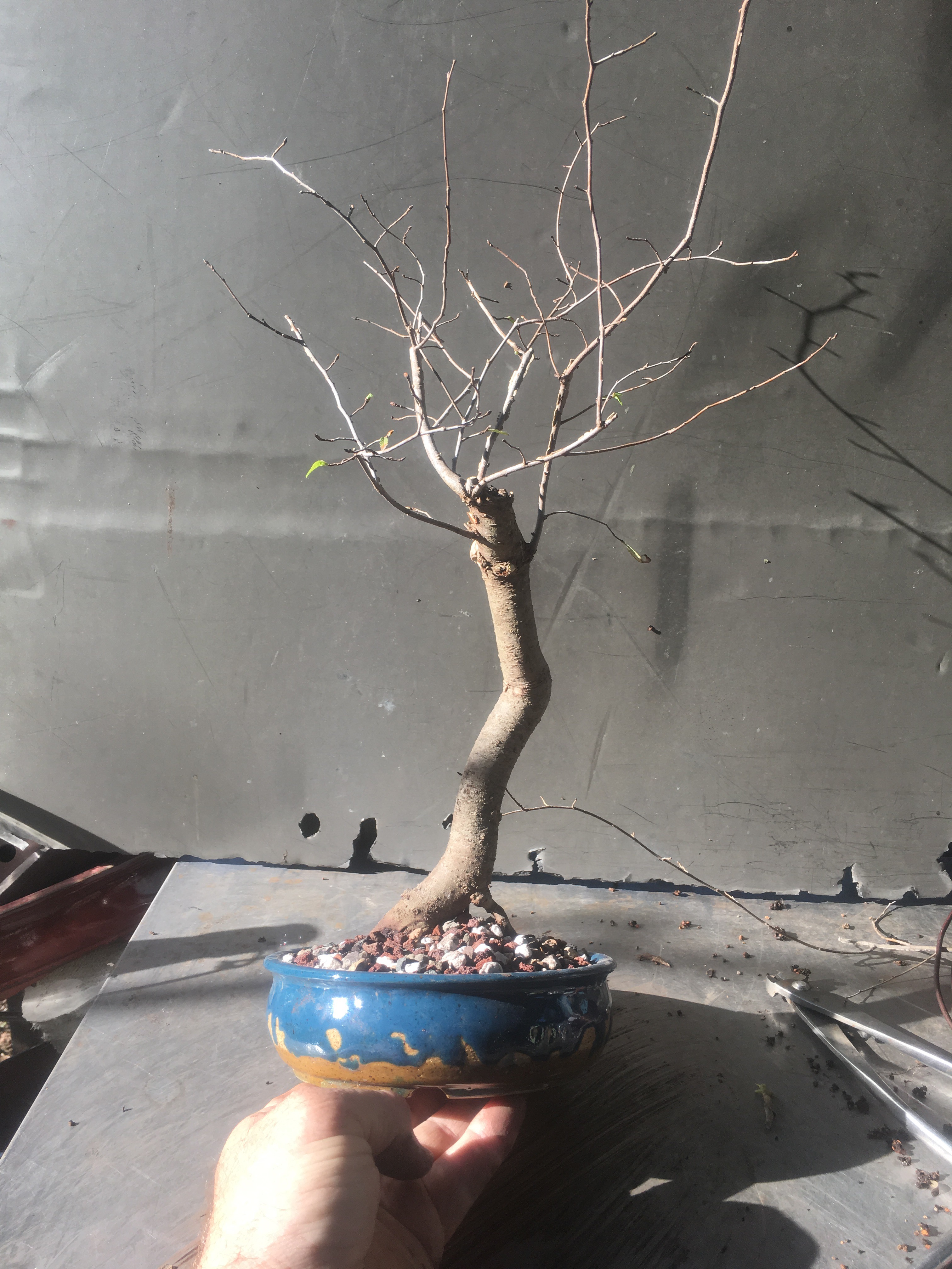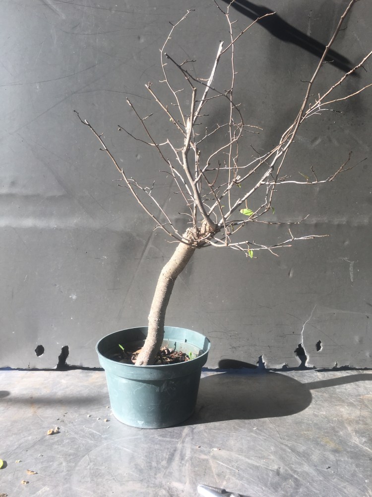 Ficus salicaria root cutting:It’s going to stay just like that for a while. When I posted it on those social media sites, it was like the bonsai people turned into bonsai styling fascists. They insisted I cut it back to one or two branches, fit it into a mold, use a cookie cutter to make it look like they thought it should. So, in the spirit of discomfort and annoyance, I shall keep it as thus, for a while.