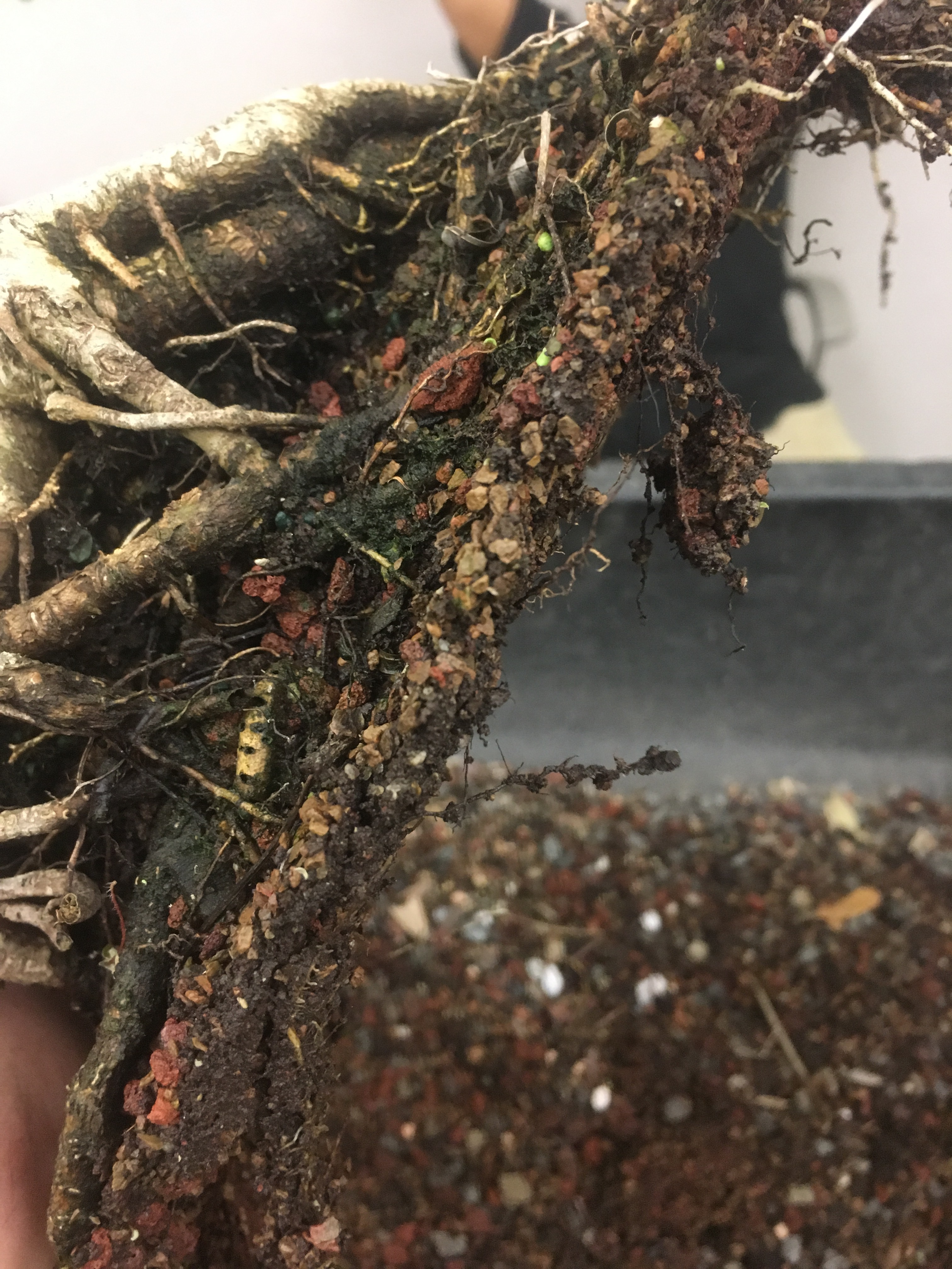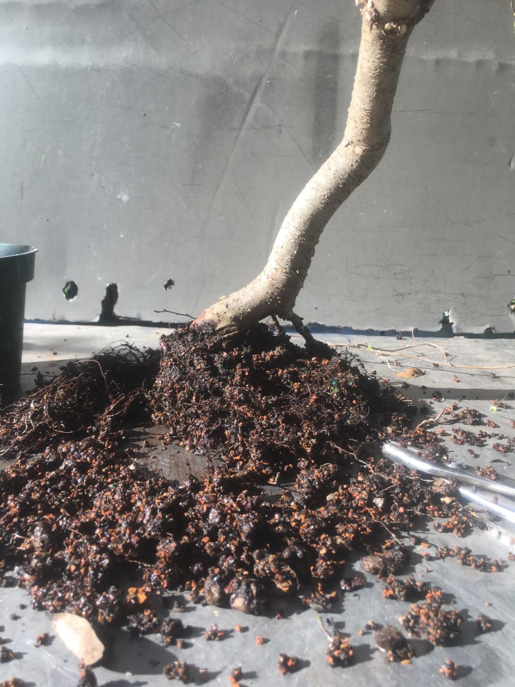 One thing I’d like to mention, you don’t have to bareroot a tree the first time it goes into a bonsai pot. In fact, I’m with Boon, maybe remove only half of the old soil. My strategy is to begin with the old soil under the trunk base. That’s the critical area in the root zone of either being too wet or too dry. If you get a good mix in there first, it’s easy to replace the periphery.