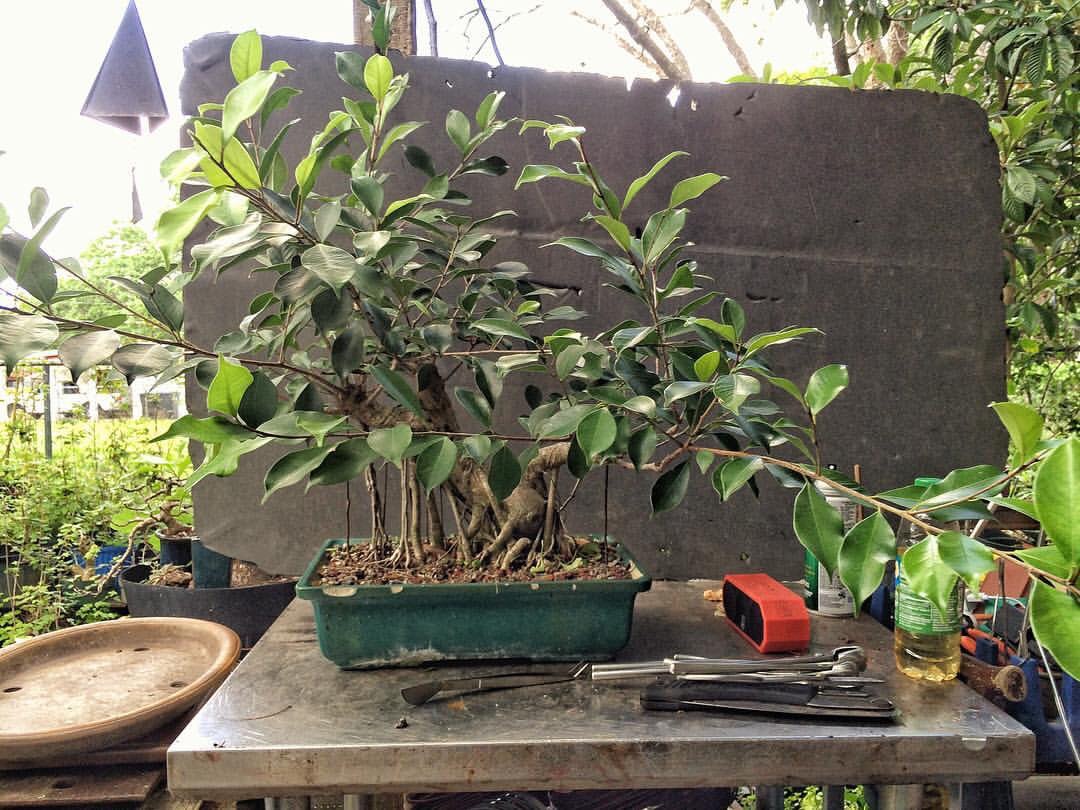 The solution:  a more reasonable pot depth. Although it’s obvious a ficus can survive in a pot like this (they can be epyphitic after all, most ficus are strangler figs) it’s not ideal for developing a bonsai.