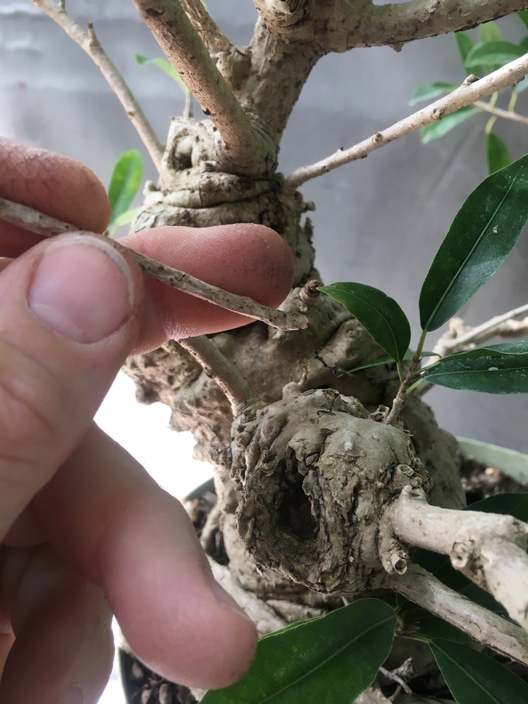 That’s a common question Shannon, we wrap the wire to bend and position the branches to give the tree an aged and gnarly look. The main aesthetic goal is to make a small, usually young tree look like a big, old tree. The shape, line and orientation of the branches are one of the visual cues we use to achieve this look.