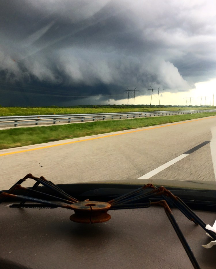 Well now. That looks ominous. Don’t worry, it wasn’t the leading edge or the eye wall (if I hear the phrase “the stadium effect” one more time I’m going down to Miami and punch Mr. Cantore in the nose) of a hurricane or rain band, that’s just a regular old shelf cloud last Sunday.