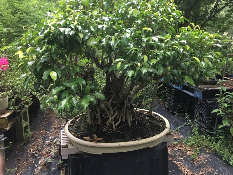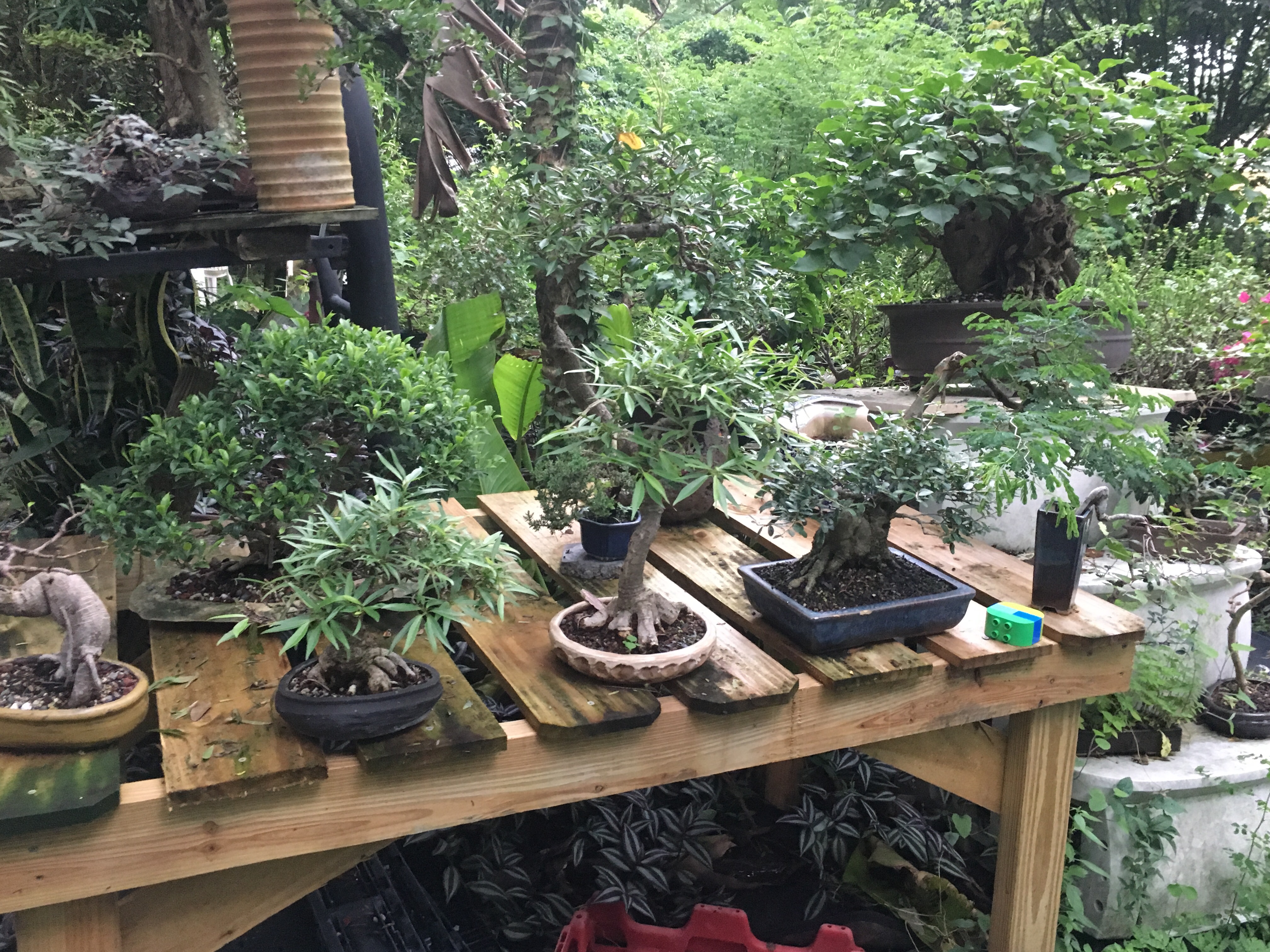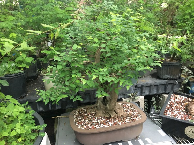Technically, Adam’s Art and Bonsai Studio and Nursery is an official nursery. More than 1,000, less than 10,000 plants, propagation only for self use, inspected, selected, registered and categorized, and official; a real nursery. Now, most of the trees are in some stage of growth, in nursery pots or flats, growing trunks, branches, etc., but the “real” bonsai are too numerous to count. Lots of little trees and too many big trees. The only thing I can do is to put them on the ground and under the benches. My big problem is this: