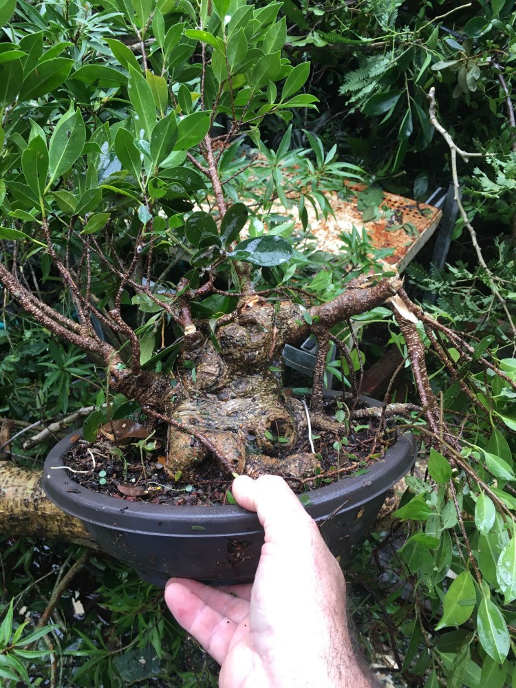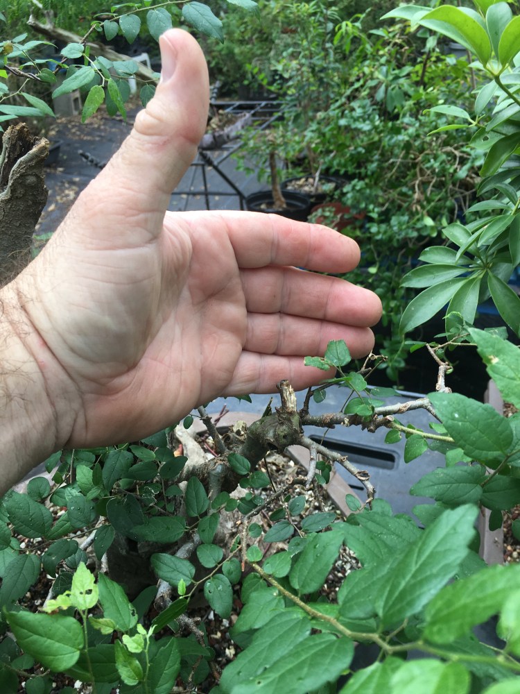 The first tree I dug out. It’s a tiger bark ficus that was imported by Suthin. The trunk has been built by extensive grafting. The chop marks and scars were almost all healed.