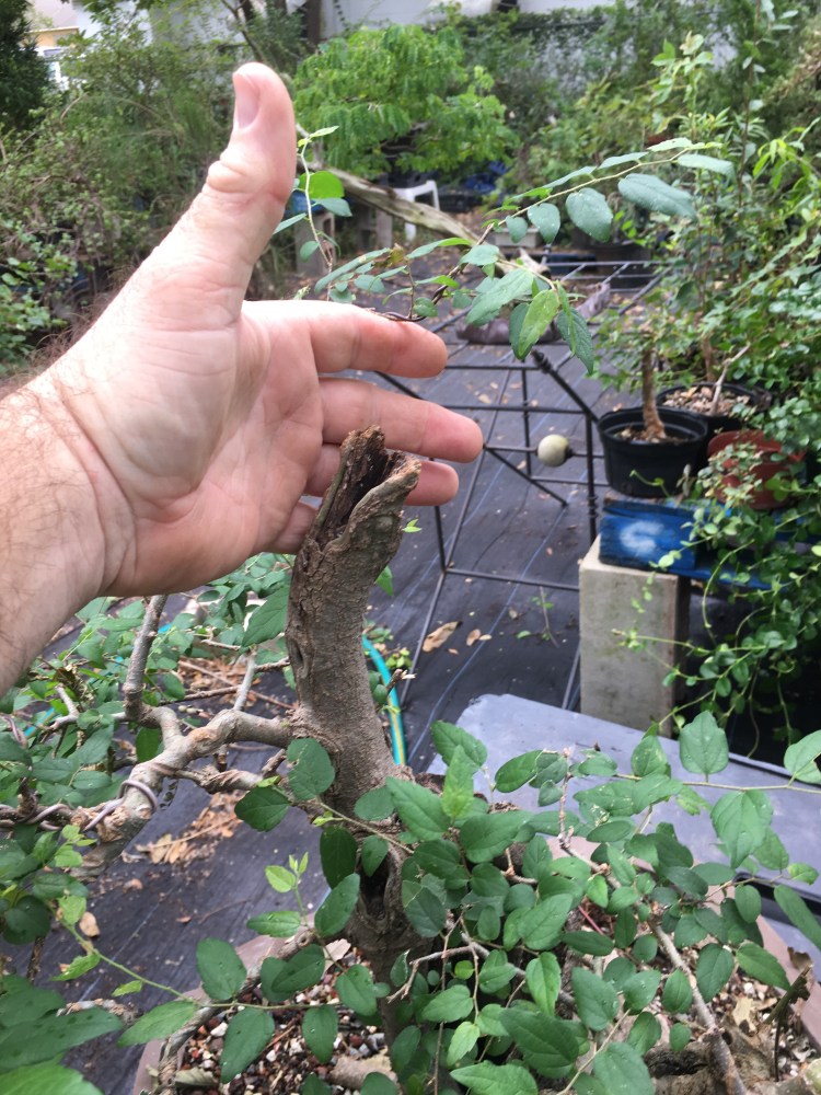 This is me climbing through the fallen trees looking for bonsai.