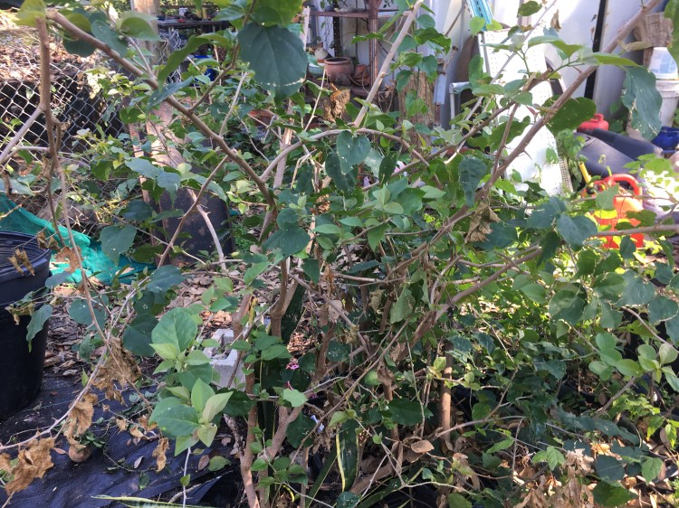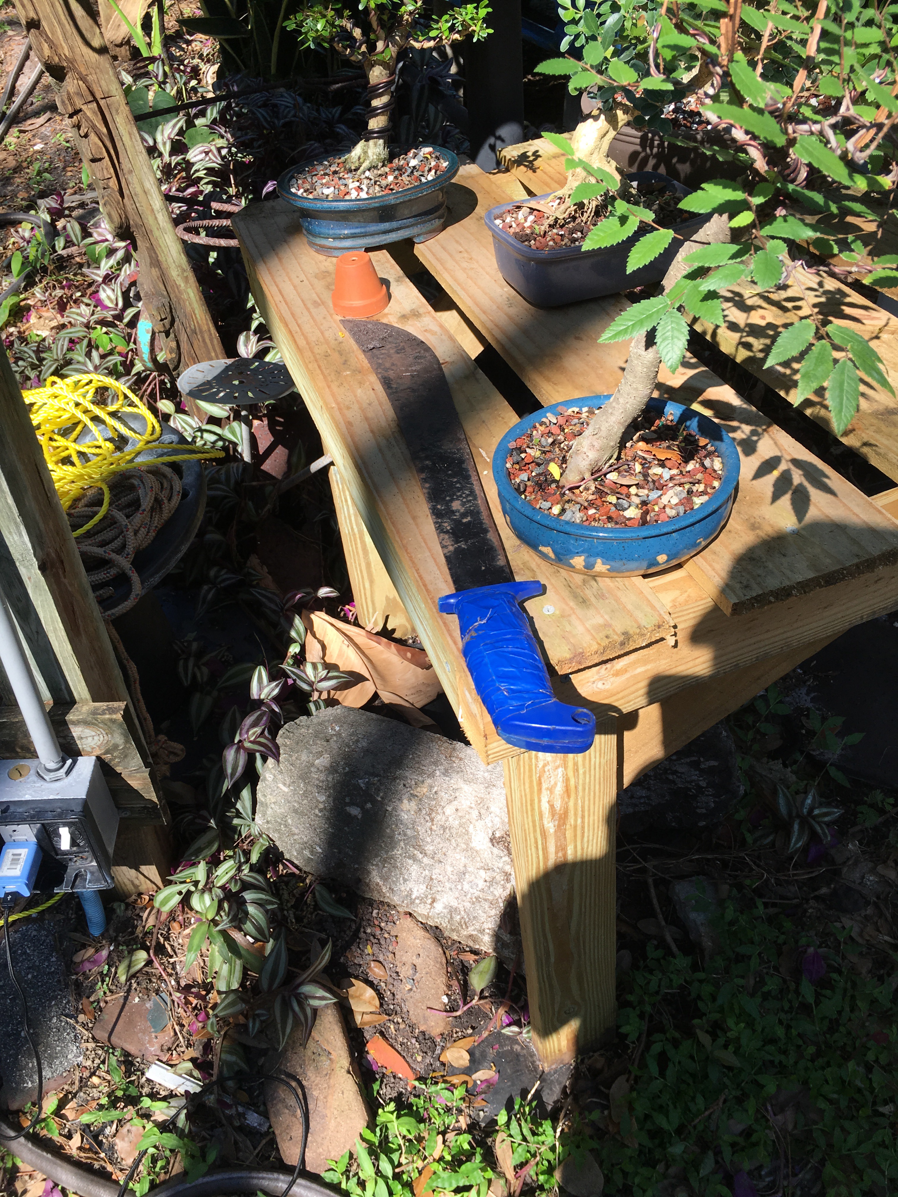 Another tree, one you’ve seen before, was “lost” after the storm. I found it and had to repot it.