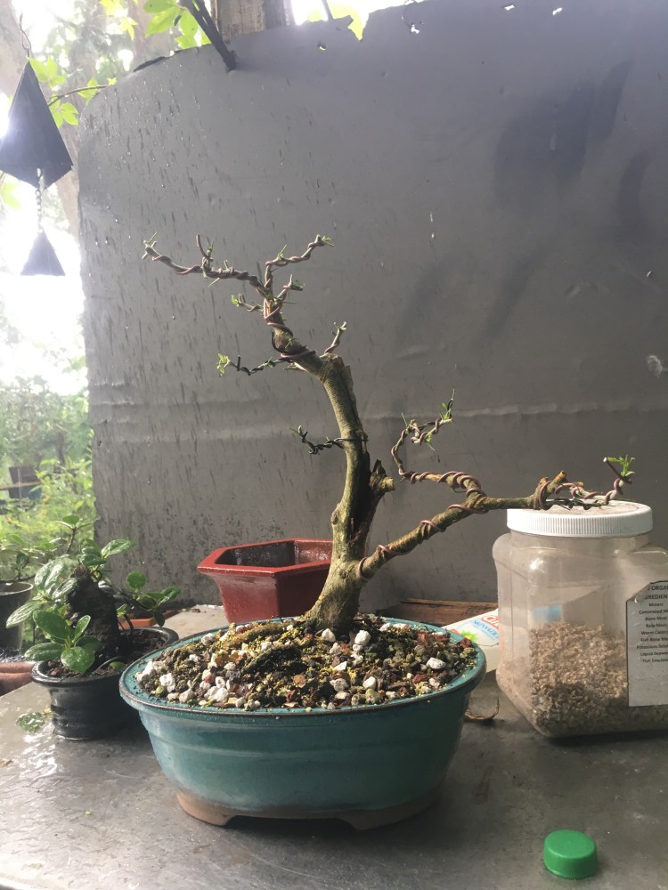 Ah, it’s just a training pot. It’ll develop faster in that pot and in a year or so I’ll find a good pot for it