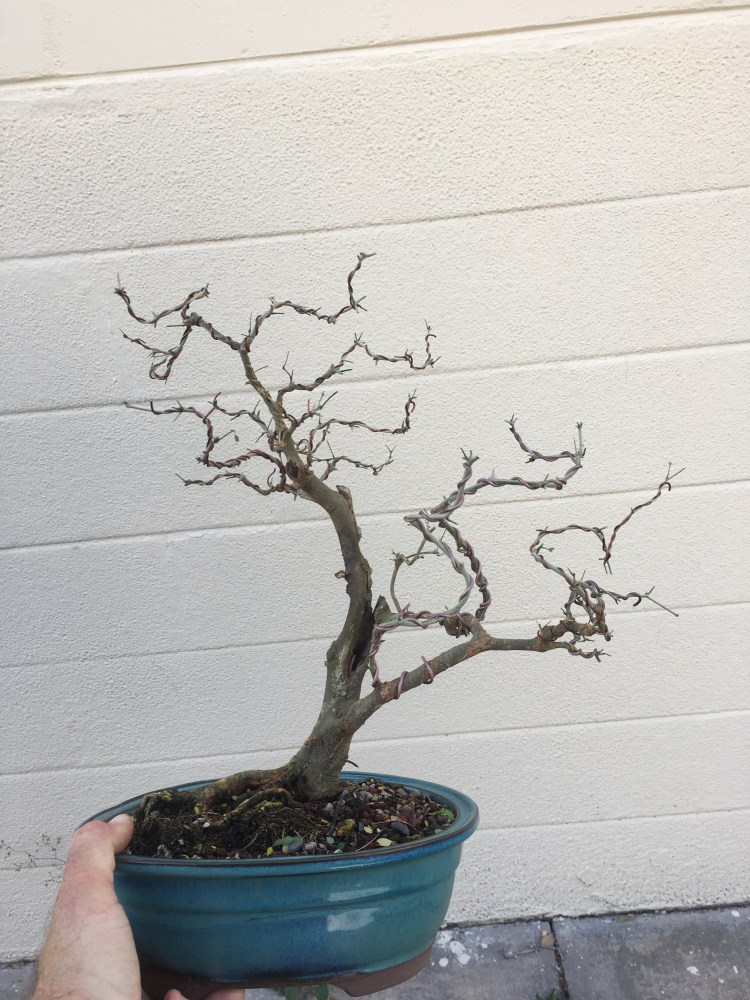 My house is filled both with antiques and modern furnishings, I like both classical music and more recent musical genres. I like that many of my bonsai have different styles also…from “traditional” to “interpretational,” each one has its own feel, and unless I’ve grown it from seed, I prefer to let the tree tell me which way it wants to look, rather than forcing my ideas onto it. I have the great fortune of being in Adam’s monthly study group, so I get the chance to bring trees that challenge me, so Adam can envision interesting futures for them and help me made that happen. To me, variety is far more interesting than just one style.