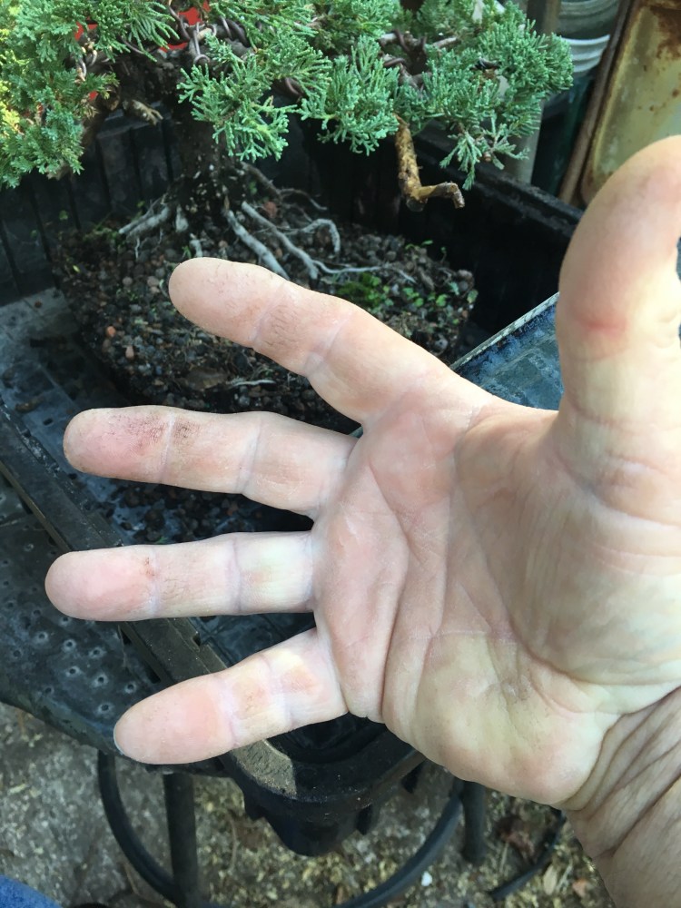 The tree was in a pretty big and deep pot, and, if you’ve read my posts before, you’ll know that, the deeper the pot, the better the drainage. And it’s drainage that is important for junipers. They like to be on the drier side (or, more specifically, since I am going to stop trying to anthropomorphize plants, they’re more adapted to dryer climes).