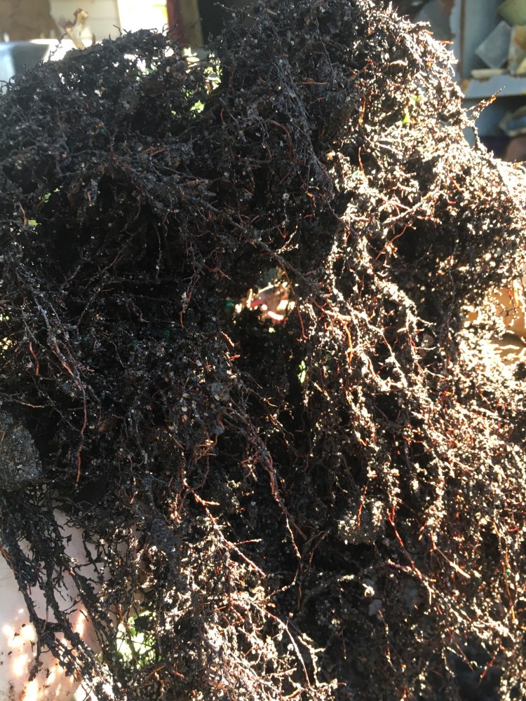 This next pic is my hand. My hand is two things: first, it is going to be the tool of choice today for the repot. Second? It’s the last thing you see if I slap you upside the head for choosing the wrong sex for your baby chicken…….