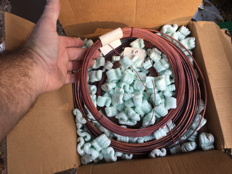 What’s funny is I’ve heard, recently, someone describing aluminum wire as being sissy wire. I’ve always found that using properly annealed copper, like these rolls, was easier to put on a tree as it is softer than the equivalent sized aluminum (for holding strength).