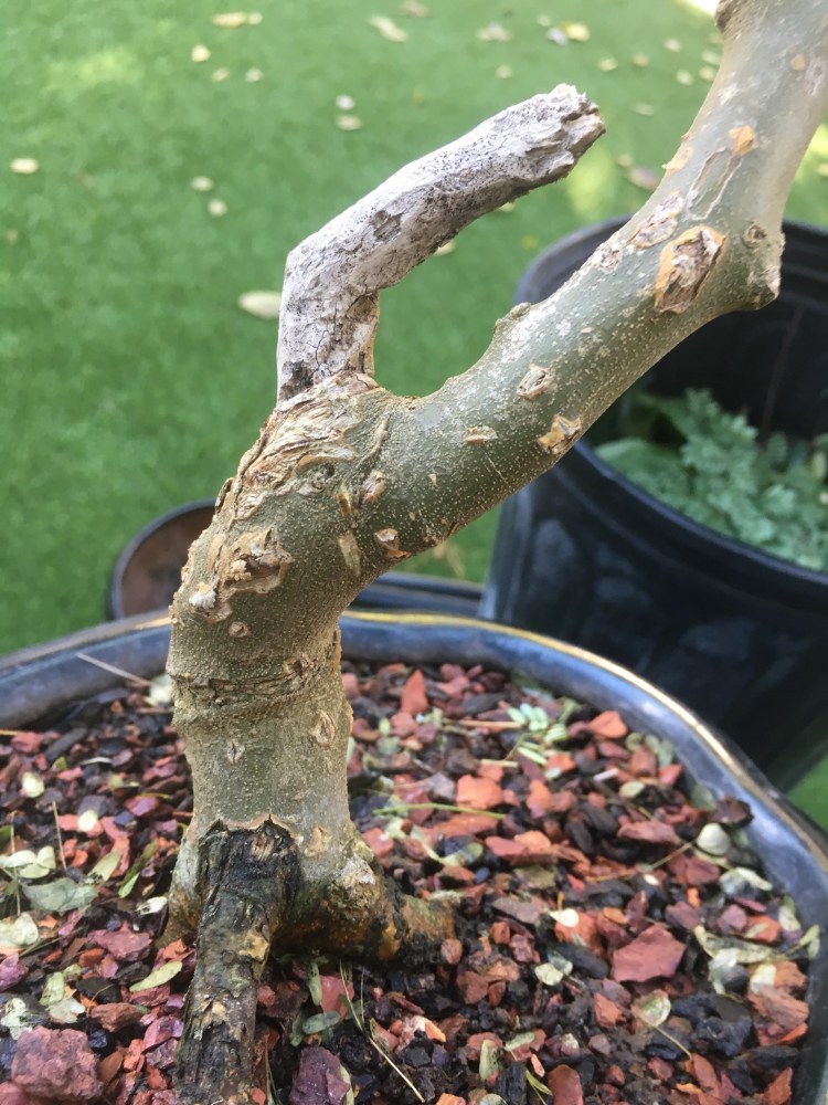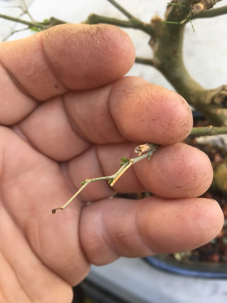 It had a Jin on it, but this is all that’s left of the deadwood. The unfortunate thing about having smaller trees is the impermanence of deadwood features that are intricately detailed. Exposed wood and hollows (Shari and uro, in Japanese) on the trunks work, but anything projecting and convoluted tends to rot fast. The reason being is it’s the heartwood, the middle of a trunk or branch, that has the oils and resins that resist decay, and on smaller trees, there’s mostly sapwood. Ah well, c’est la vie, we can enjoy them while we have them.