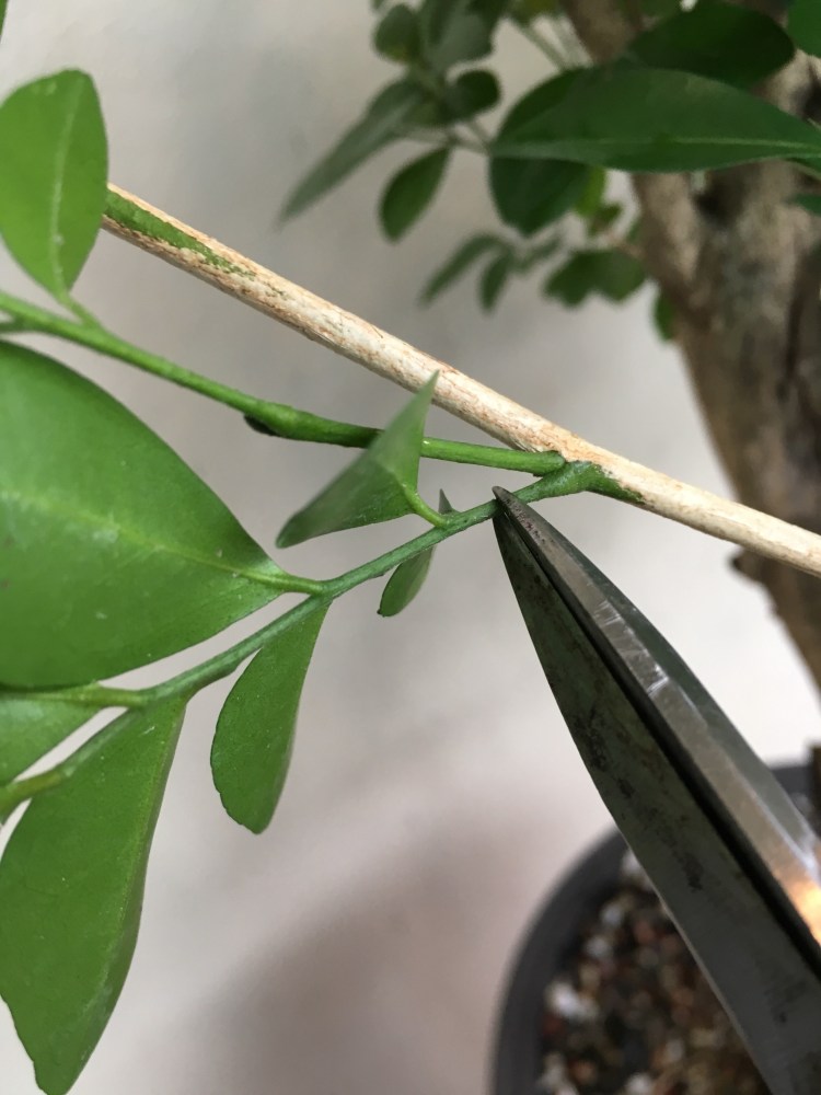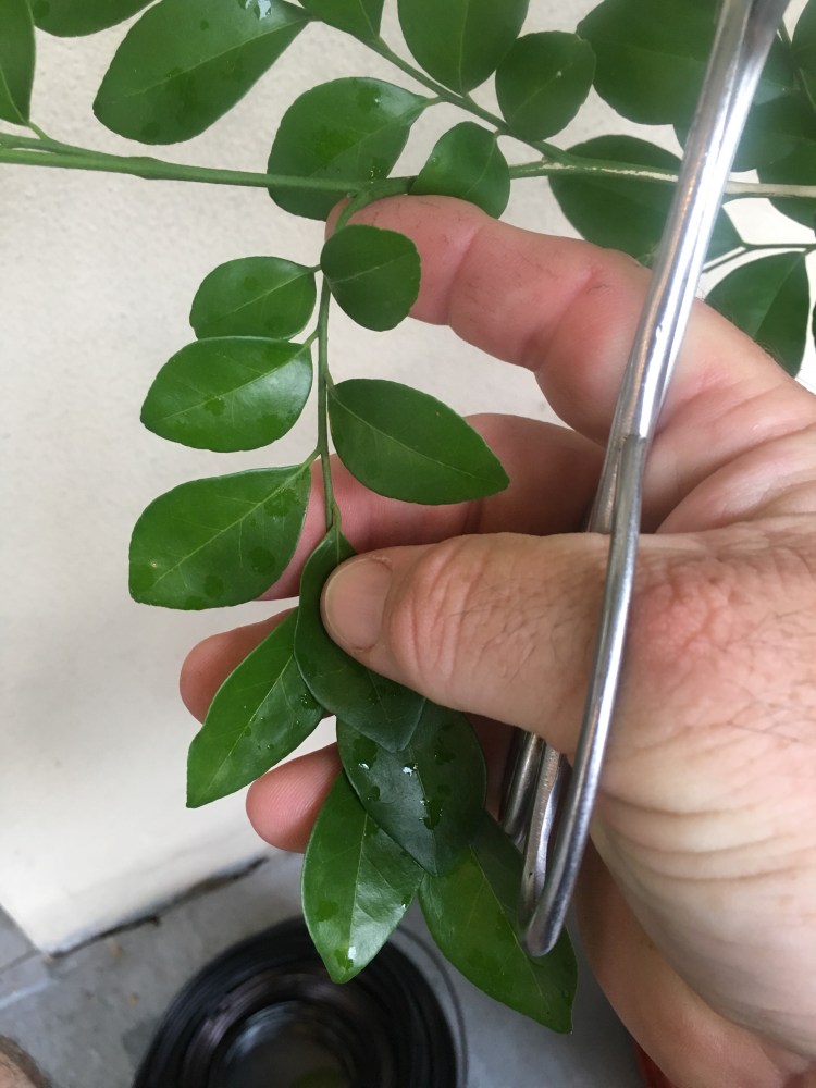 The leaf on an orange jasmine is what’s called a “compound leaf”. Meaning that this whole structure is one leaf.