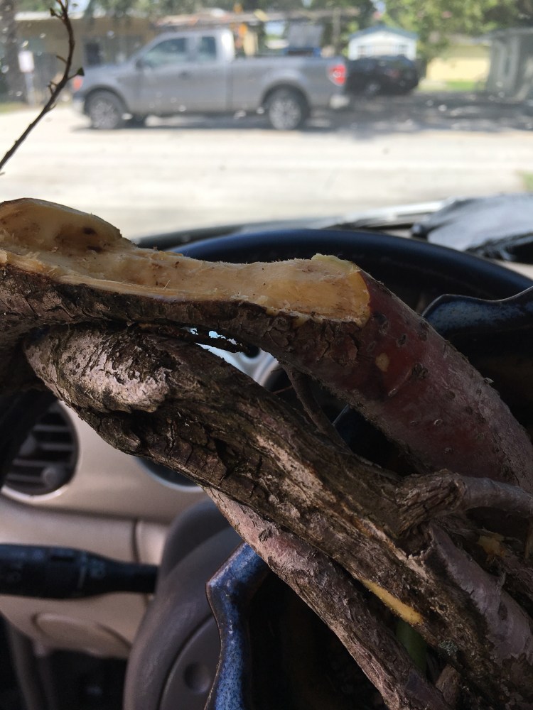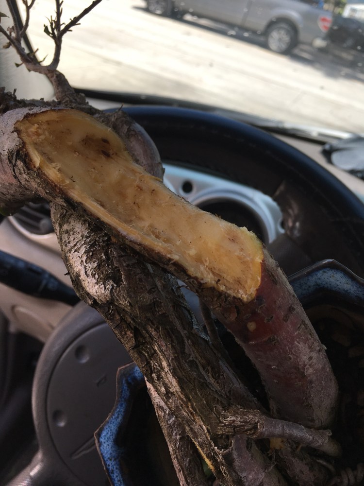 This wound was not there when I got it but I think it might have come from sunburn. A common bark wound cause here in Florida. I need to clean it out and get to good wood.