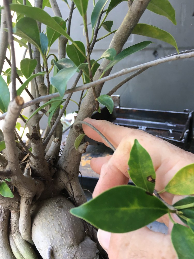 And as you know (or you may not know) these F. microcarpas have a tendency towards dieback. Meaning that when you chop a big branch, that branch will die back to the next branch or a new bud that breaks on the old wood.
