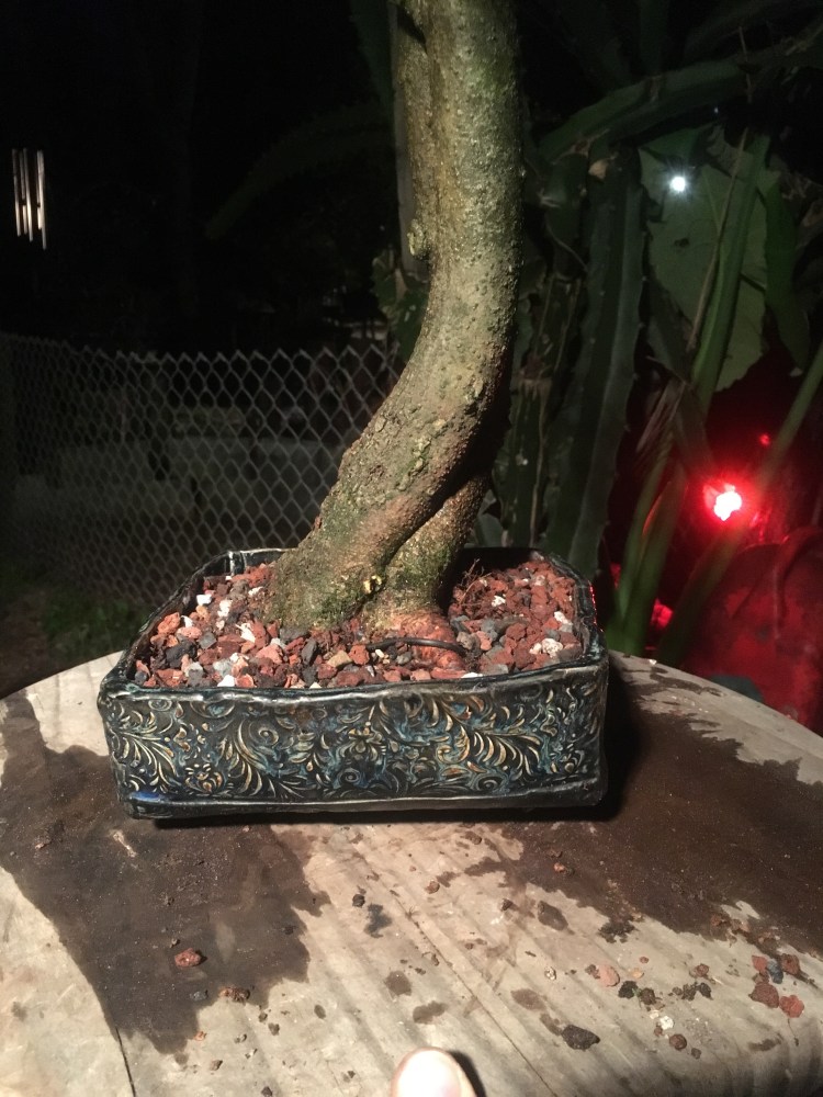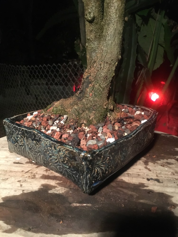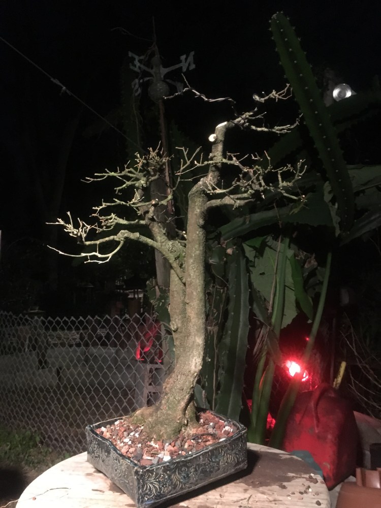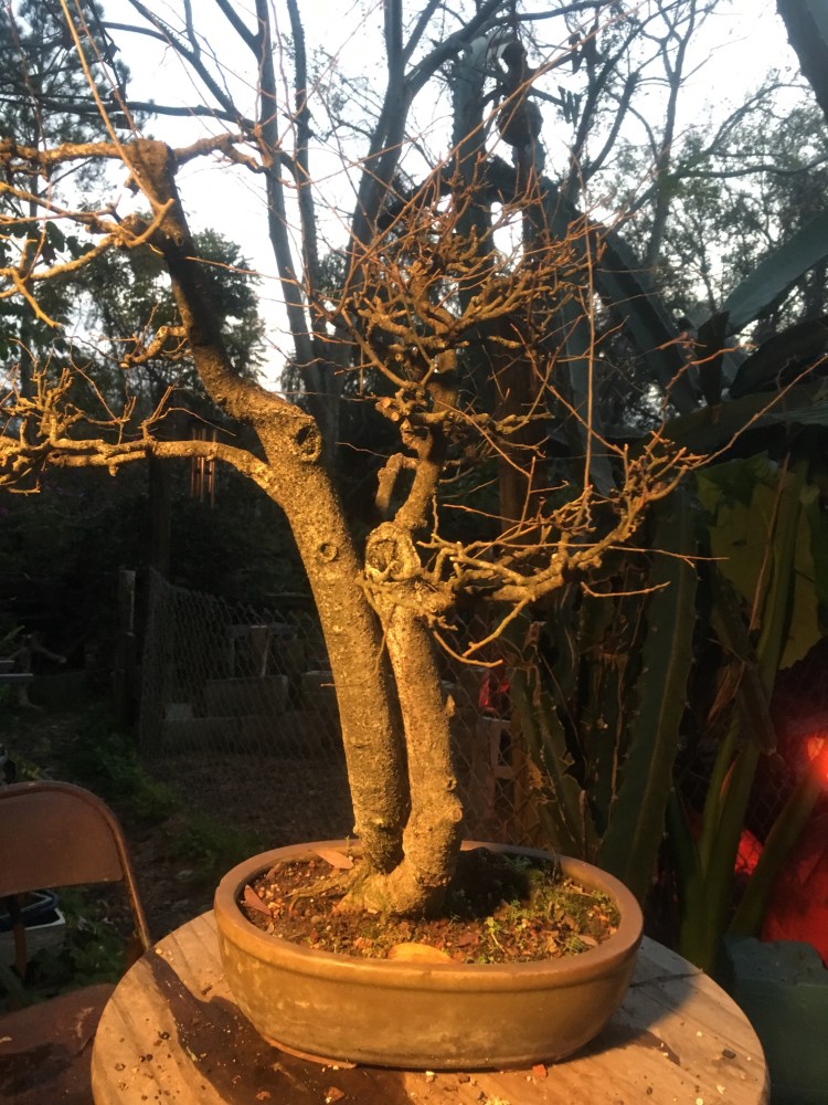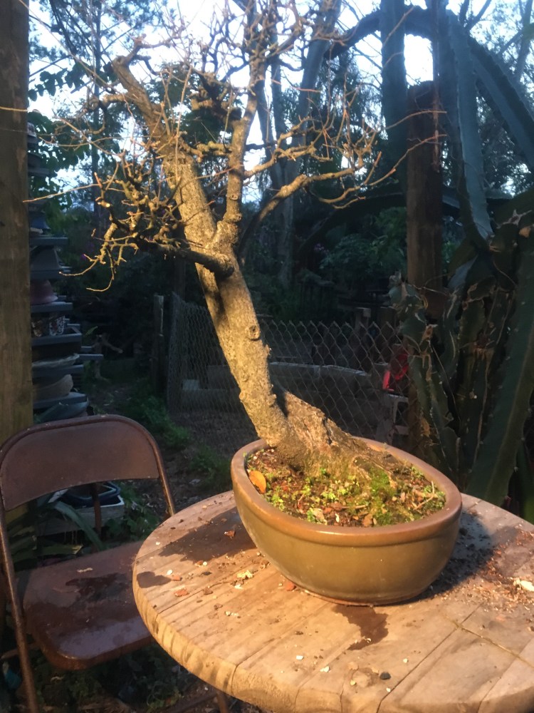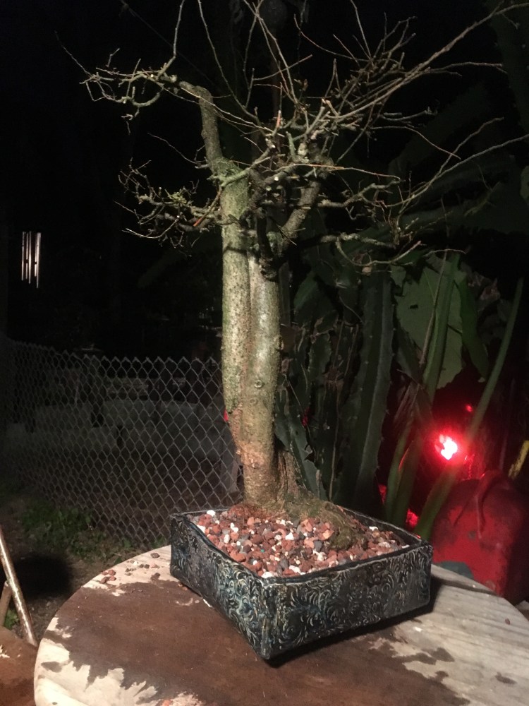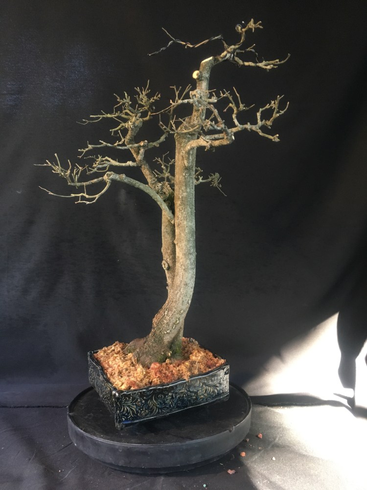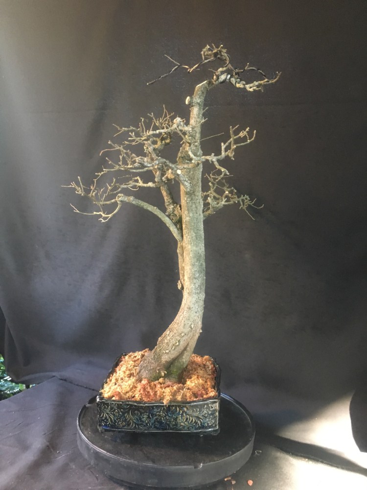 It called to me, as they say. Those who’ve gone to a major show understand it. I was a vendor, as usual, and I’d been looking at the tree every time I made the rounds in the vendor room. Gene has been selling off his collection for the last few years and he’s sold some real beauties. Things he’s been growing for thirty years or more. Being the bohemian artistic soul I am (read that as dirt poor) I never could afford his bigger trees. But, if you’re a Regular Reader of the Blog, you know I don’t go for conventional trees anyhow.