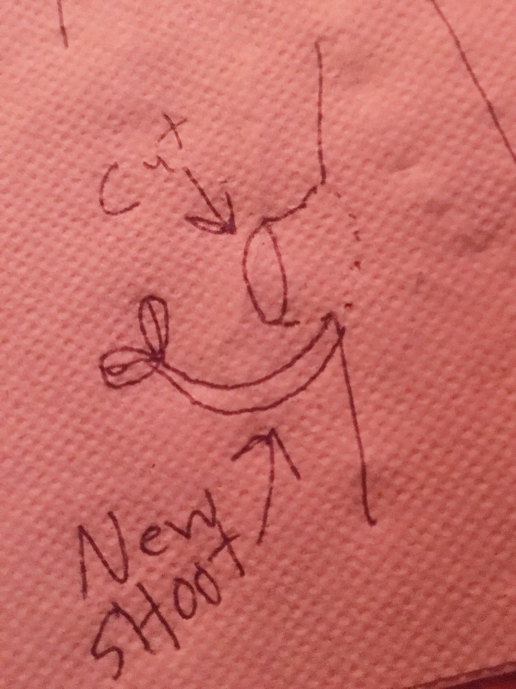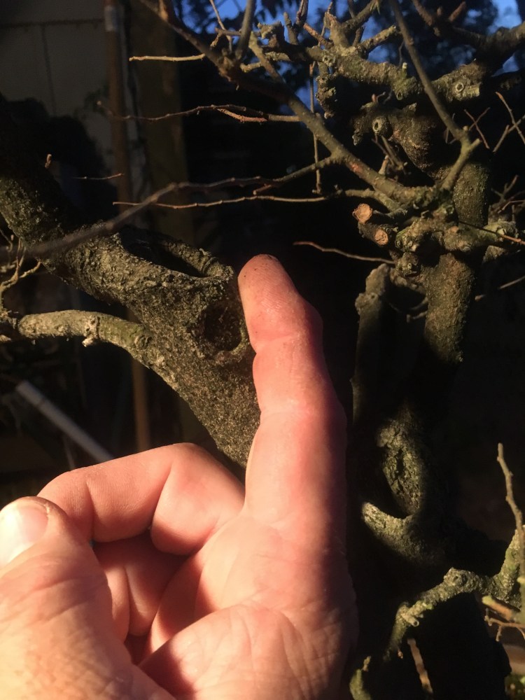 Thinking about the future for the tree, I need new shoots from here (that’s the branch I snapped off)