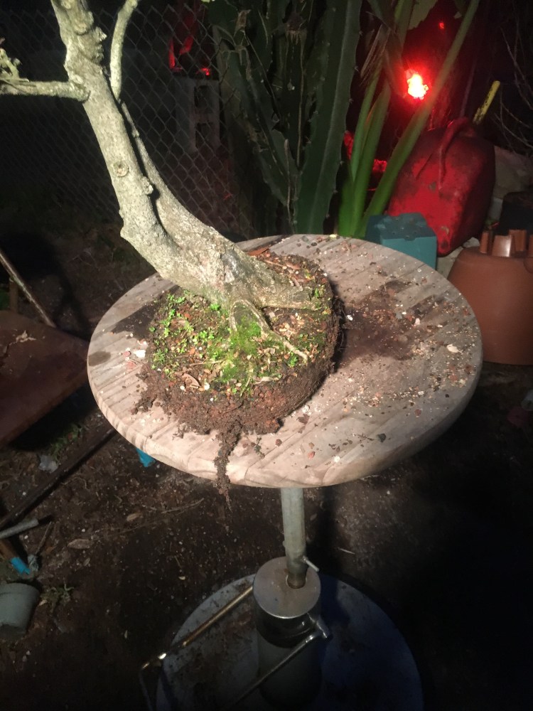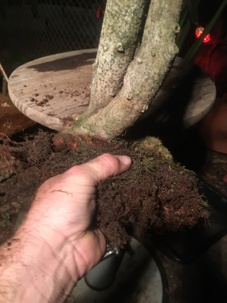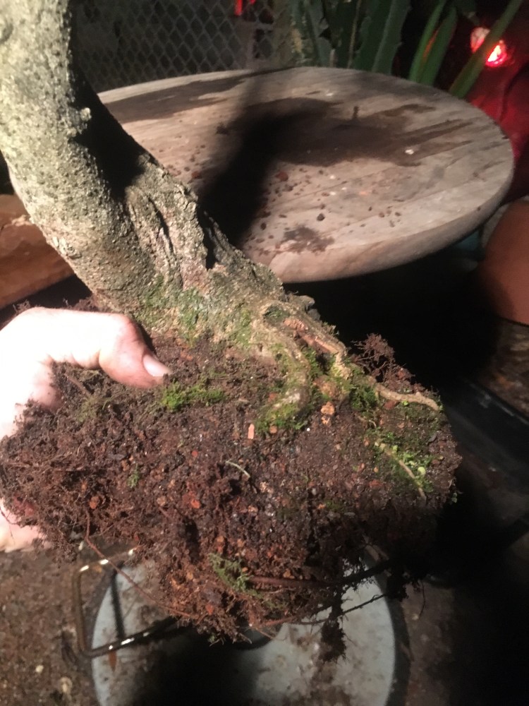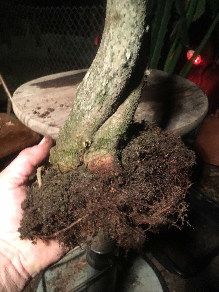 As I said, the tree came from one of the old timer Bonsai Society of Brevard club members, Gene. I have an idea where it may have even been collected, one of my favorite spots I go to (I’ve been twice this year and plan on one more trip) where the trees grow in a ditch on the side of a dirt road and they are slowly being destroyed by the road maintenance crew, every time they resurface it. It’s really quite sad, seeing the full sized hackberry with trunk scars from the road equipment, the roots sawn off at the road edge, weakening the old trunks.