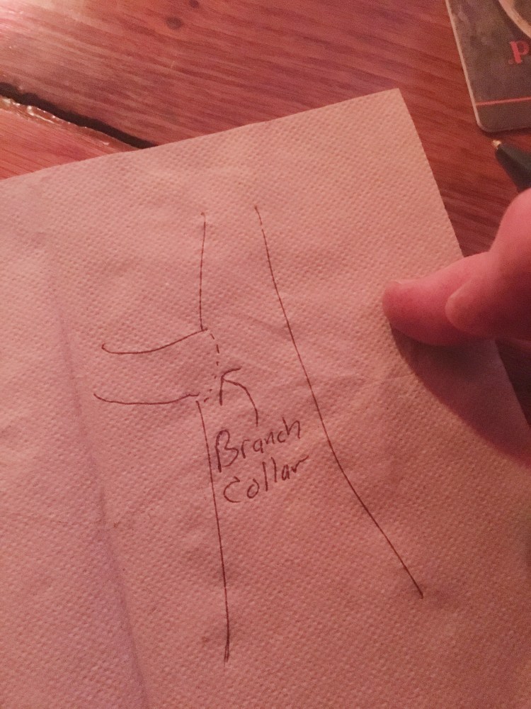 It’s sometimes a raised ridge. When you prune a tree in the landscape, Dr. Shigo tells us we should cut at the outside, but right up to, the branch collar (google Dr. Shigo).