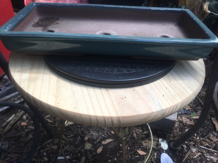 When we put a tree in a comparatively narrow pot (with the canopy of the tree even to or just beyond the left and right end of the pot, this is narrow) we are framing the point of view as though the eye is relatively close to the tree (remember, we are trying to trick the minds eye into believing that a small, young tree is really a big, old tree, and that’s the only purpose of the shallow bonsai pot to begin with).