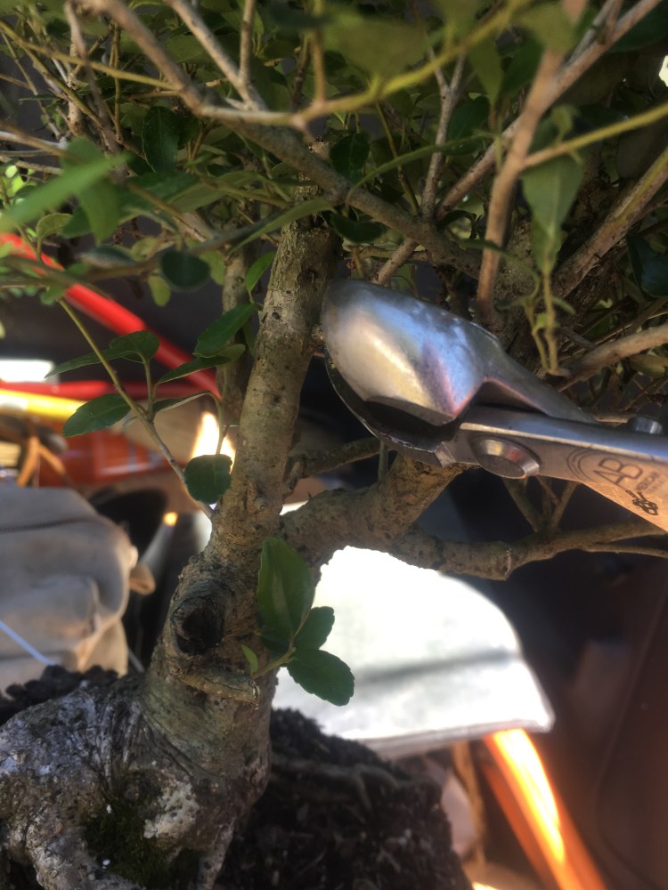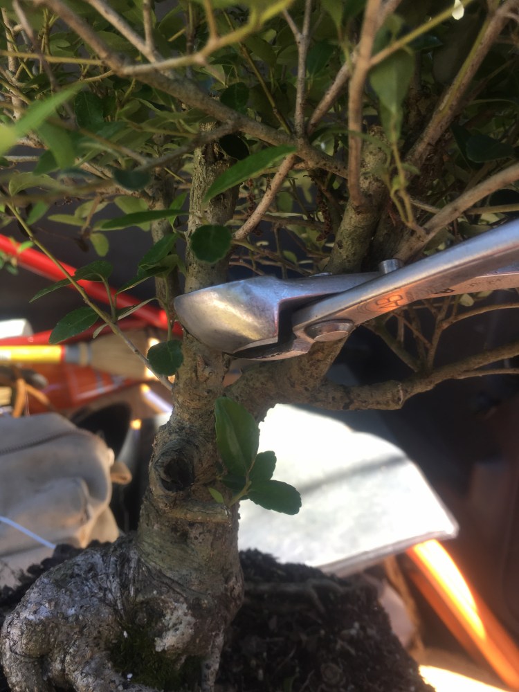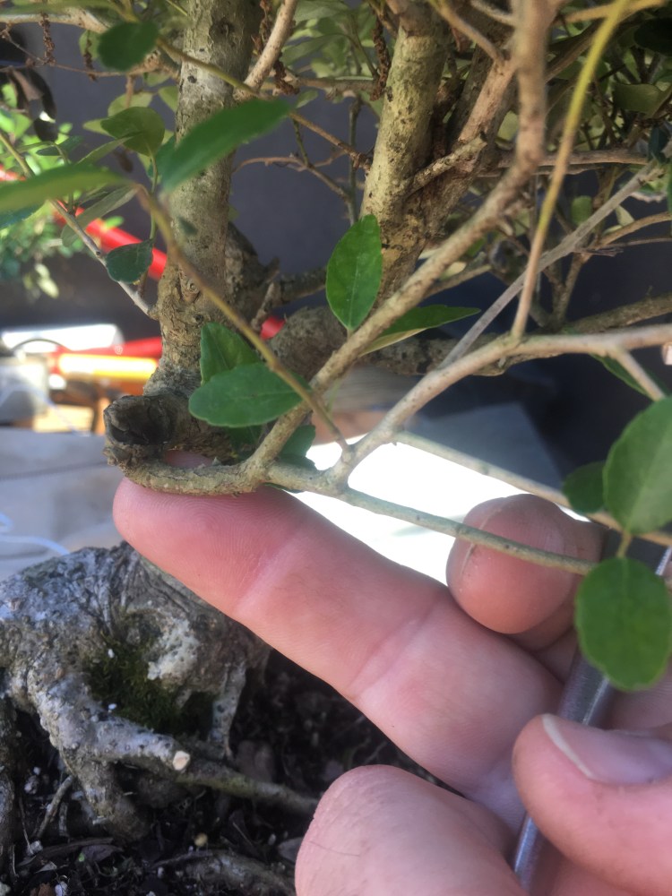 The spring growth hasn’t started on this tree yet, or it’s already hardened off. This means I can work on it. The energy hasn’t been wasted pushing out new growth I’m just gonna chop or, if it’s hardened off, it’s generated, through photosynthesis,enough to replace all its used in that first push of foliage.
