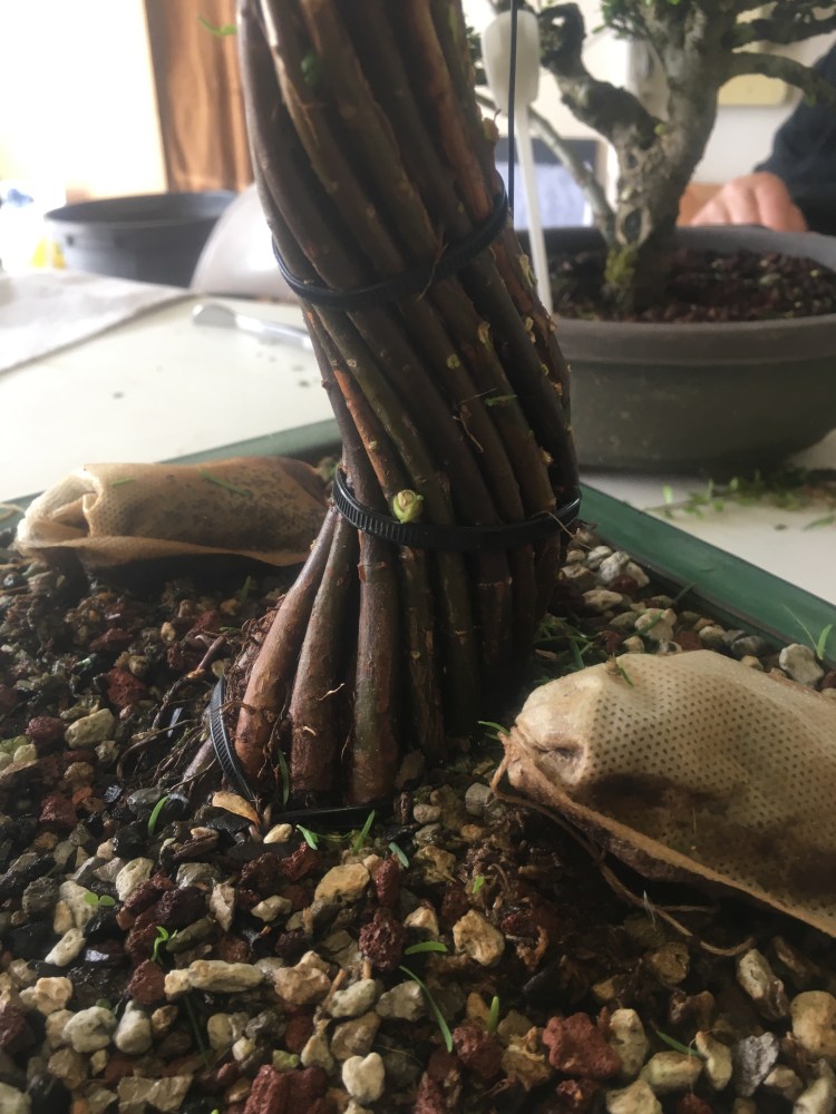 I’ve seen the technique done with maple whips and ficus cuttings but this is the first cypress one I’ve seen.