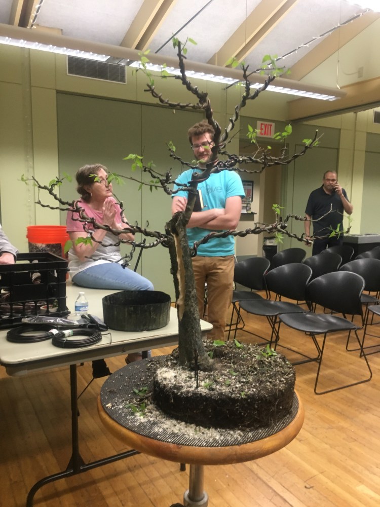 We were gathered at Evan’s place, and one of Evan’s trees we worked on was a workshop tree from the class I led last year for the Cincy club. An American elm.