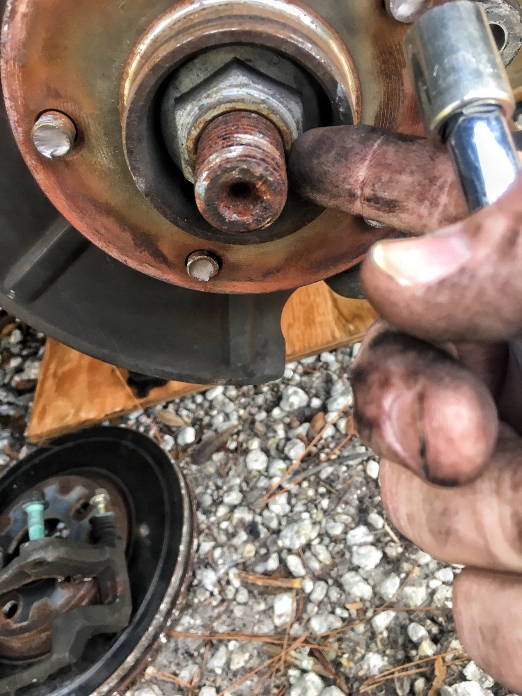 Instead of just a few easy twirls of the wrench, we needed to put a new wheel bearing on (you know, the one I had warned against, funny how that happened) the hub hit the asphalt and rolled about 100 feet, it was shot, as they say.