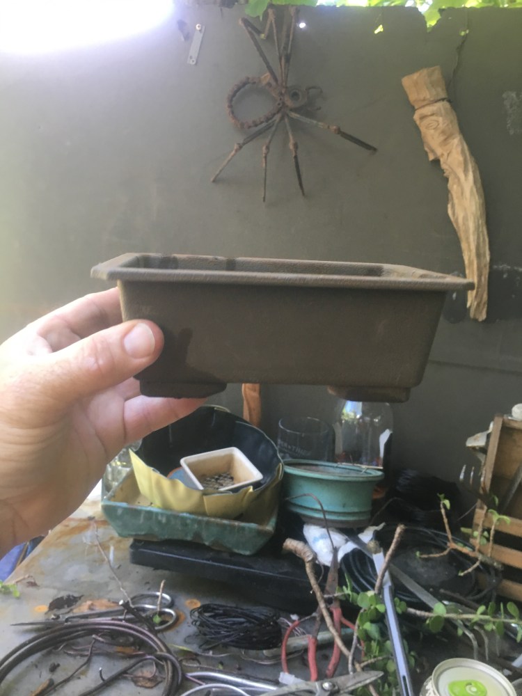 I’ve used many types of containers for training purposes. Chopped down black nursery cans, 5 gallon buckets, cement mixing tubs. But this is not the best container to use.