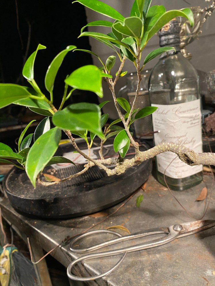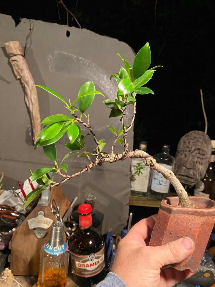 The tree is a little more than just a stick in the pot though, like I said, it has a quality to it and is a variety of tiger bark where the base swells amazingly, compared to regular f. microcarpa