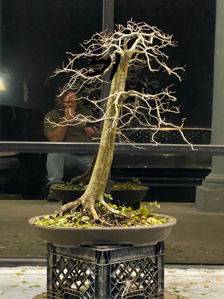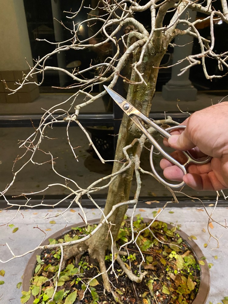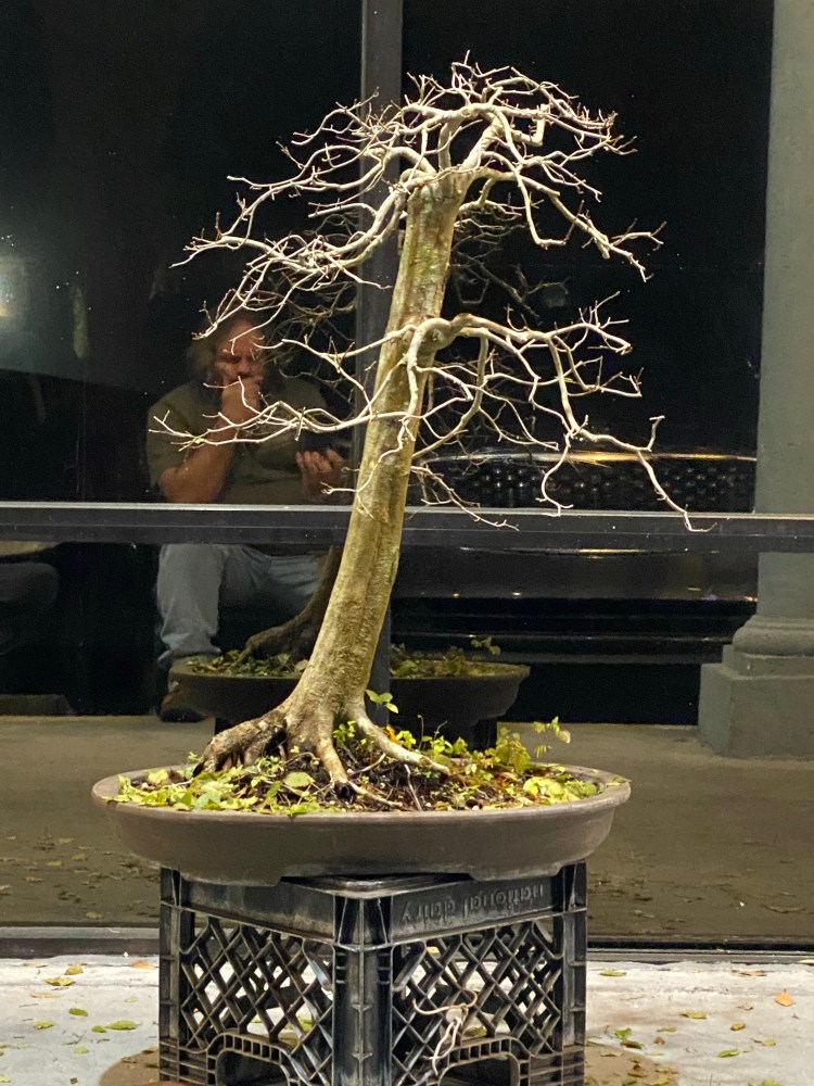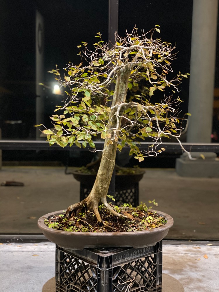 The tree, as designed by David, and to my eye as well, was the representation of an old American hornbeam in the Florida forest. David worked for many years as a Forestry Ranger for the Fl. Dept of Agriculture (one of those crazy heroes that run towards the forest fires), so his experiences and vision are spot on for the “naturalistic” school of Bonsai. Not saying he should be pigeonholed there (or I should be for that matter) but often times a tree should look like a, well, simply put, a tree.