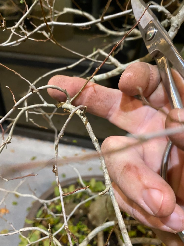Since it’s me working it, my first step is, of course, removing all the old leaves. Joking aside, generally I don’t remove old leaves here in Orlando in the fall or winter months as just doing that simple thing will kick the tree out of dormancy and, as you may or may not know, a deciduous tree needs it’s winter nap in order for it to grow well in the spring and summer.