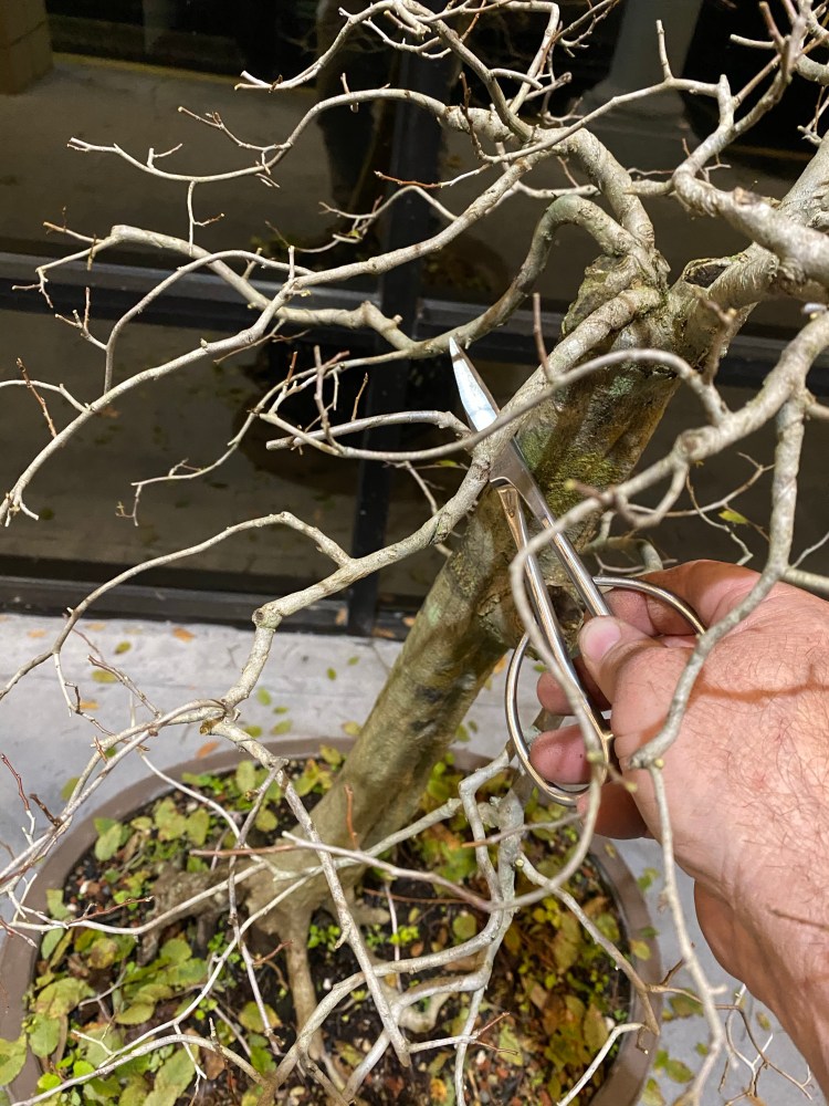 One could get lost trying to figure out where to start on a large tree (Maybe that’s why so many people are impressed by the big trees? They see the bigness as a real challenge. A smaller tree is harder to develop in truth. There’s less energy in little bonsai, and fewer opportunities to style. A large tree grows like crazy, is almost infinitely plastic, and you can even chop it down to make a small tree..)