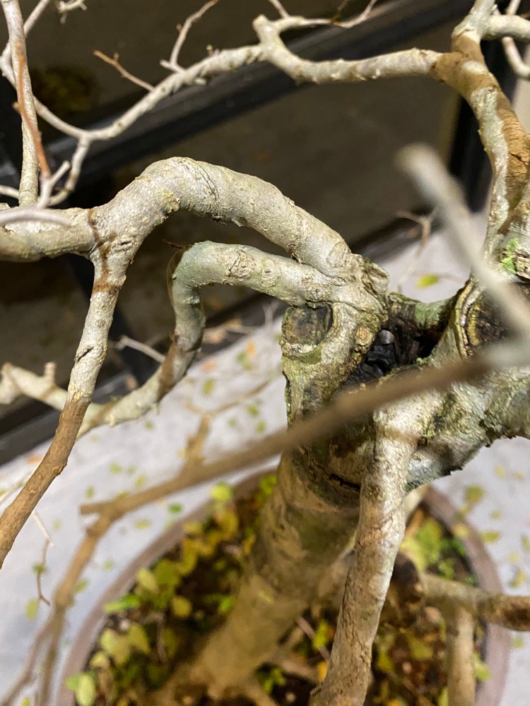 This tree (Carpinus caroliniana) was styled by David Cutchin, who also collected it from the forest, at a BSF Convention several years ago. I won it in the auction.