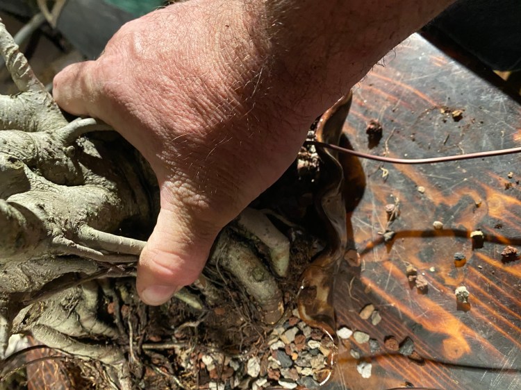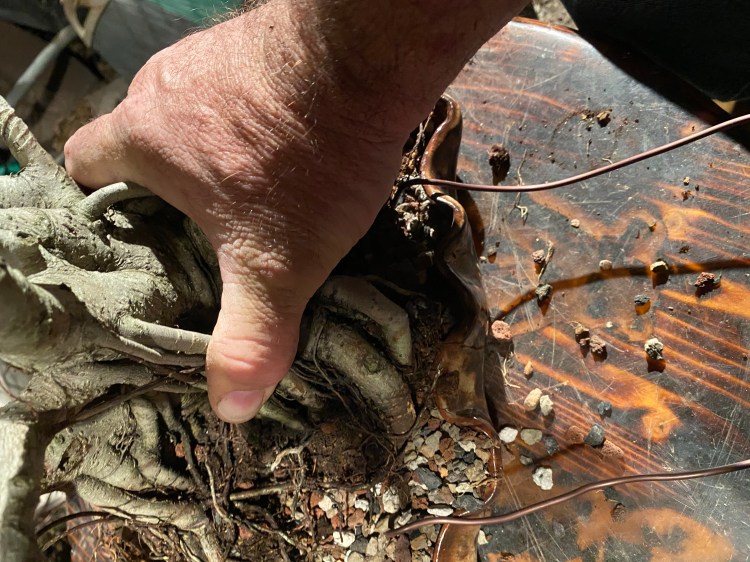 But I’d like to get try to get this ficus into this new pot I was given by my friend Doug. The original Hippie Dad Bonsai guy.