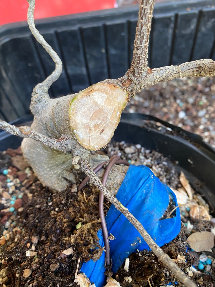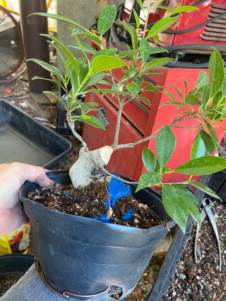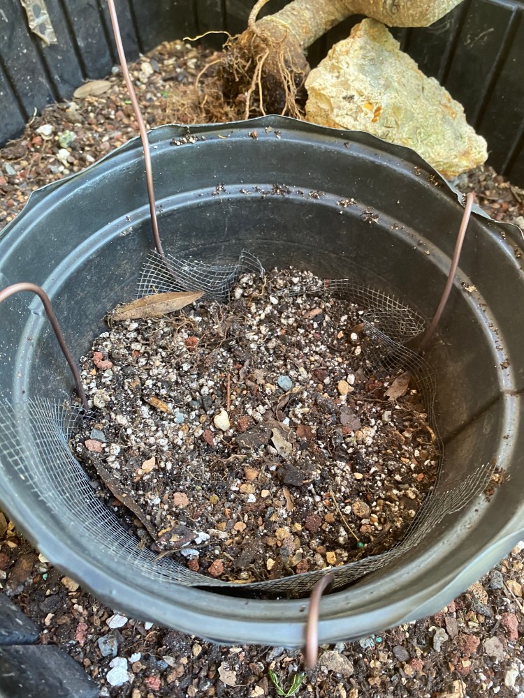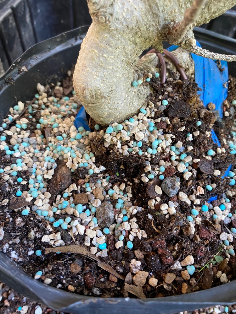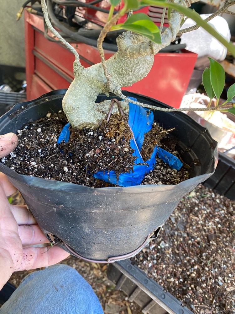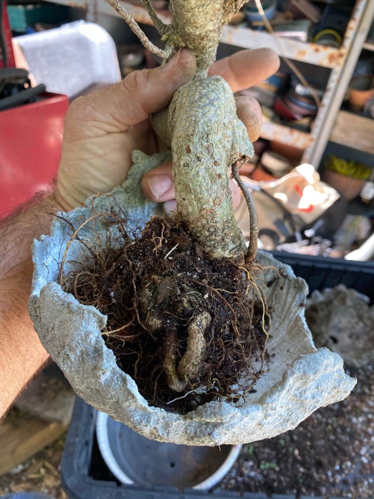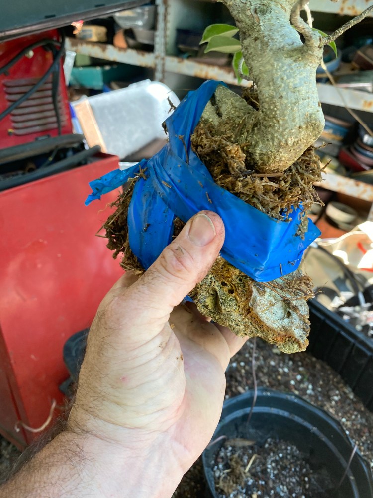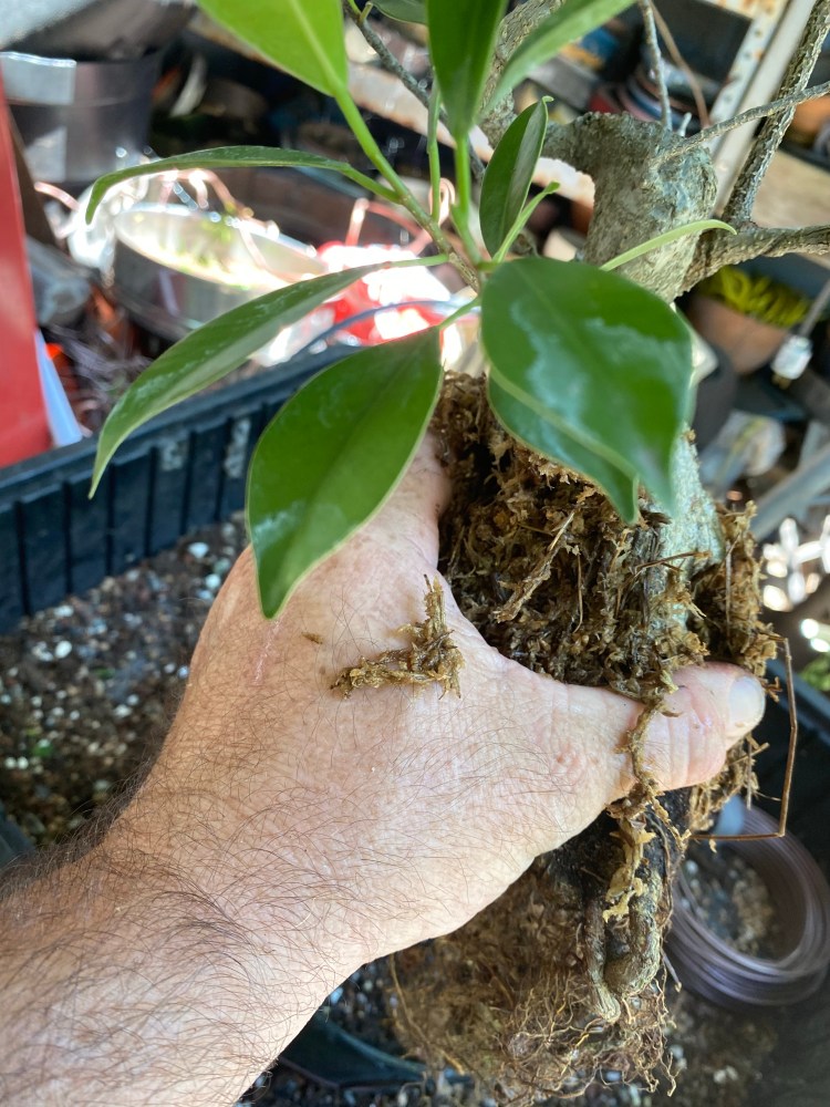No special (insert famous bonsai professional’s name here) soil mix. Sorry, substrate. just a regular soilless potting mix, and I added in the stuff I raked off the roots about 25 pics ago,…