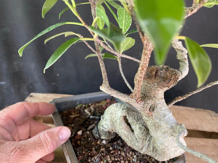 In case you couldn’t tell, the species is a ficus microcarpa “tigerbark”. Some call it “golden gate” or “kinmen”. Hmmmmmmnnnnn…..