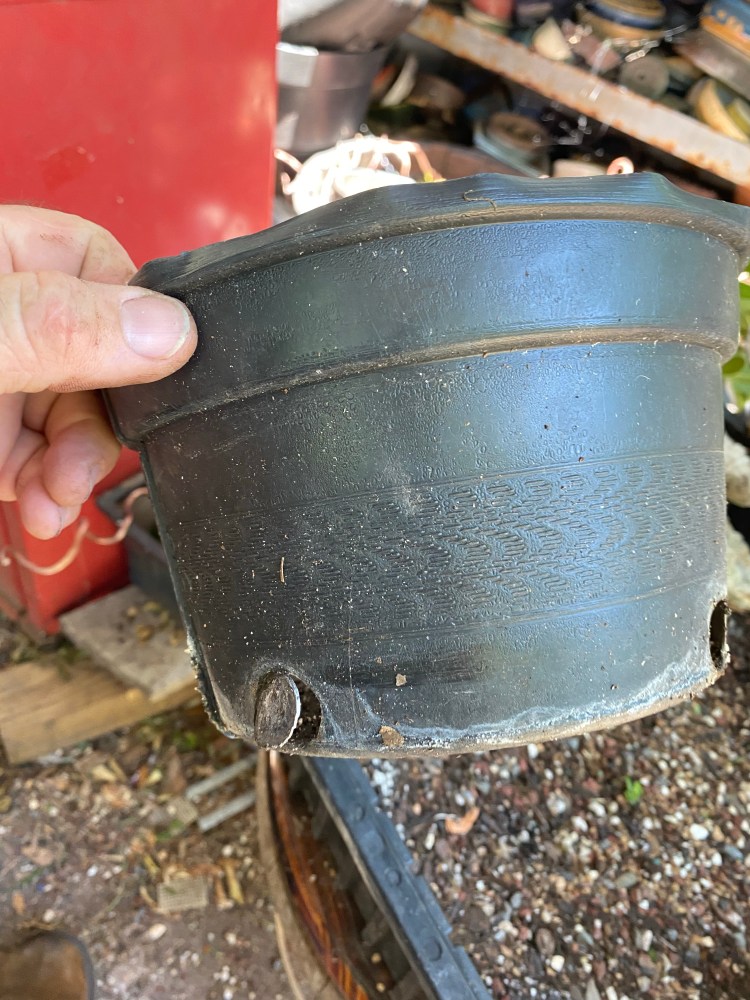 No fancy pot yet, black plastic is the prescription of the day.