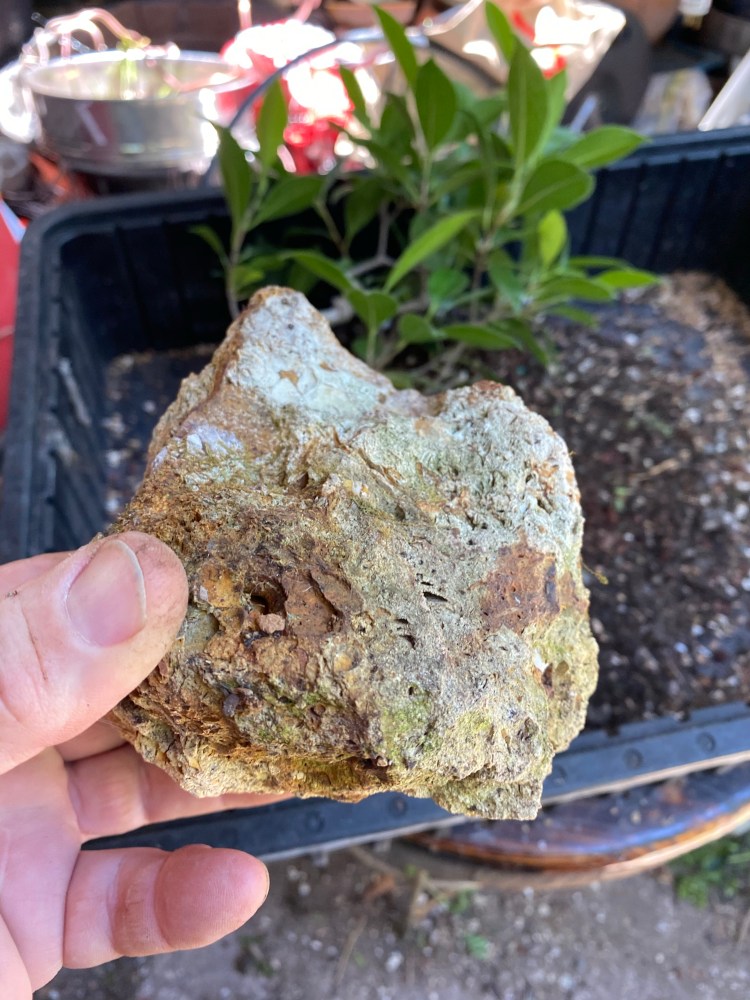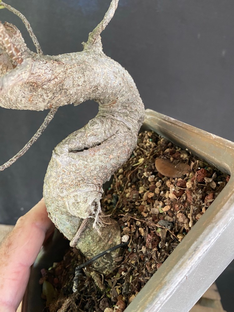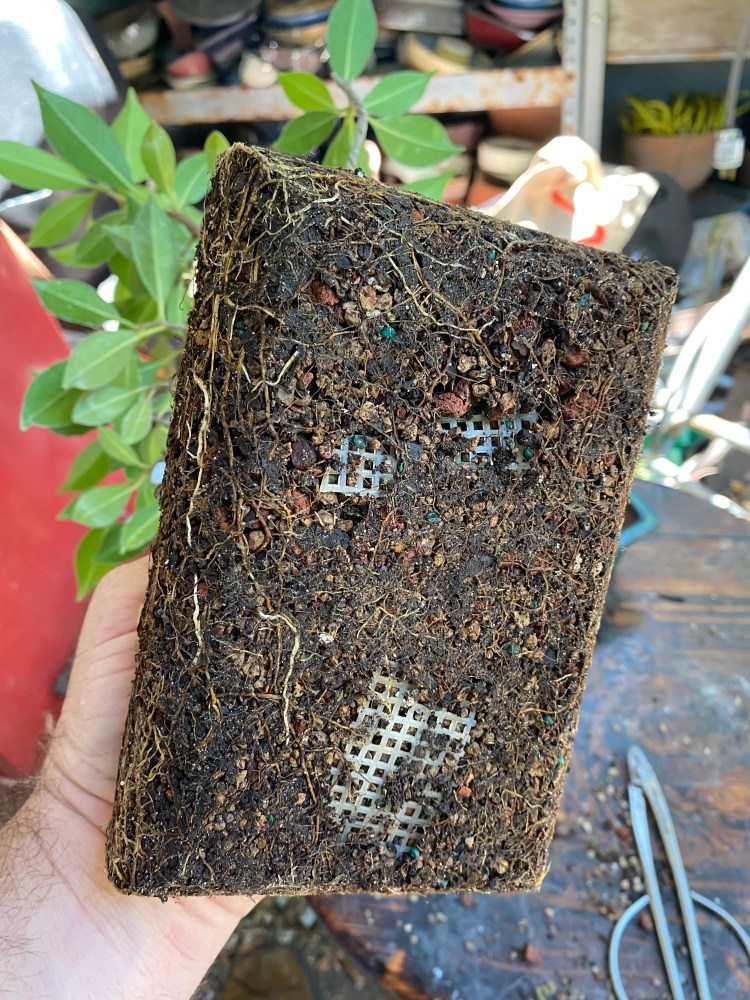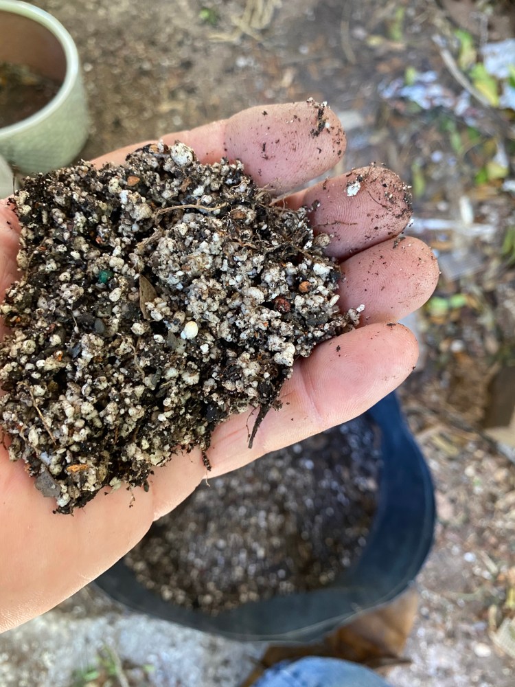 No special (insert famous bonsai professional’s name here) soil mix. Sorry, substrate. just a regular soilless potting mix, and I added in the stuff I raked off the roots about 25 pics ago,…