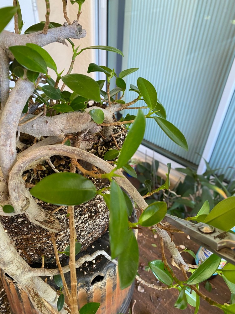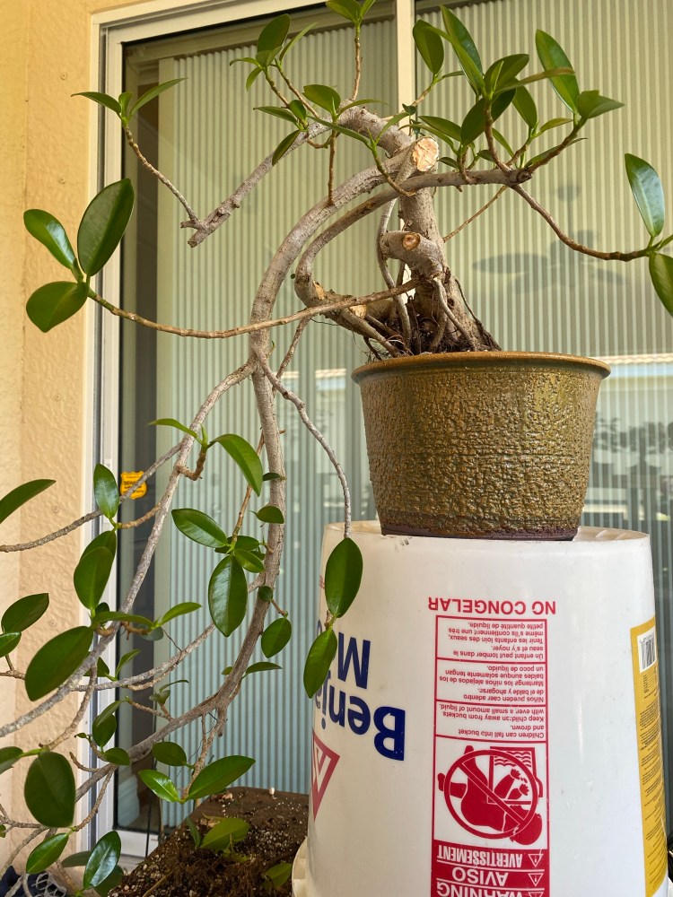 Today’s victim is a Ficus microcarpa “crassifolia”. Common name is “green mound ficus. Some people like to call it the “pointy leaf green island” but hey, people call the little lizards that run around all over Florida “geckos” too.