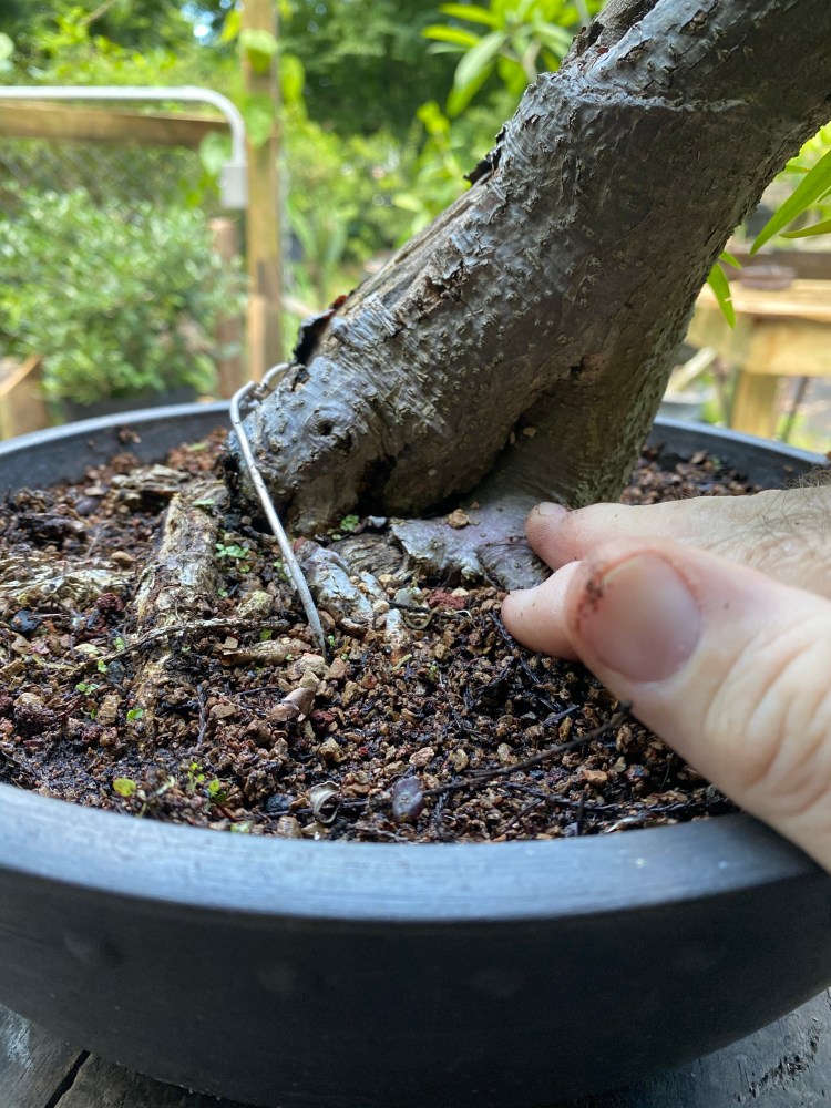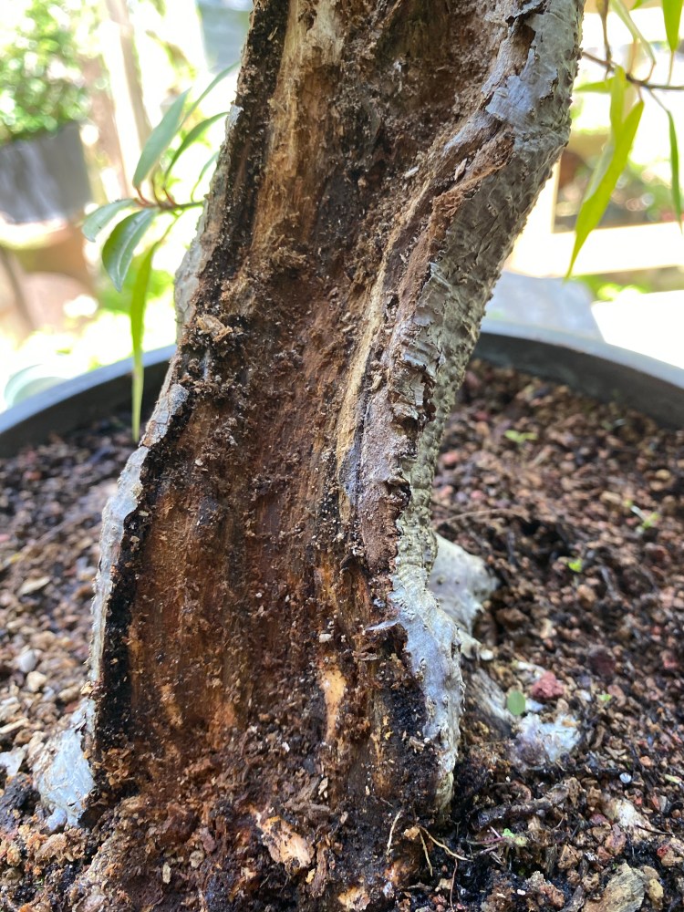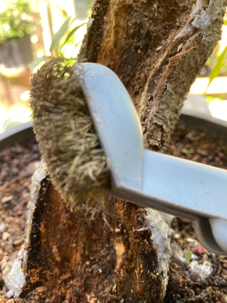 From experience on ficus salicaria, I know I’ll come to living wood, if I dig down enough.