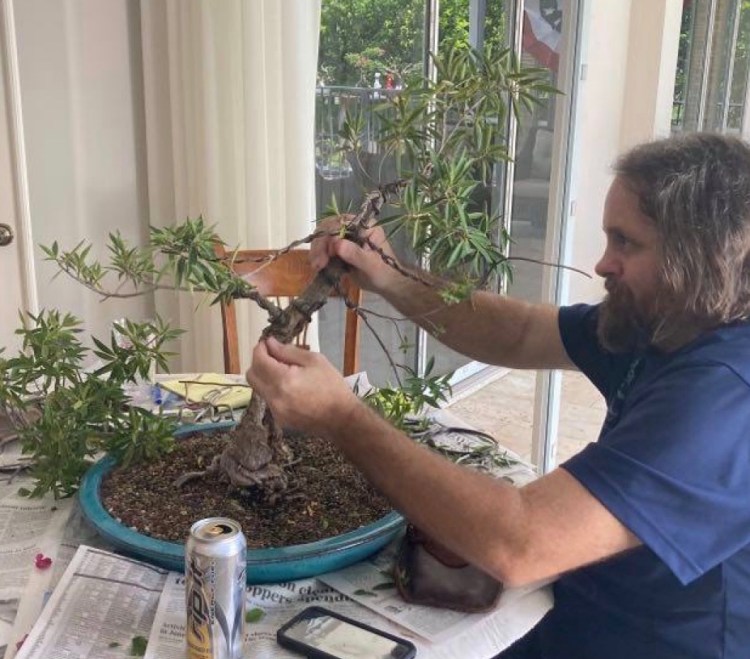So here I am, watching Disney+ in the Airbnb, trying to stay hydrated and counting the hours from when I last took that last 800mg of ibuprofen and trying not to cough. Then I got a message from a FB friend, Buzz. He asked if I could come by and take a look at his collection and work on some trees.