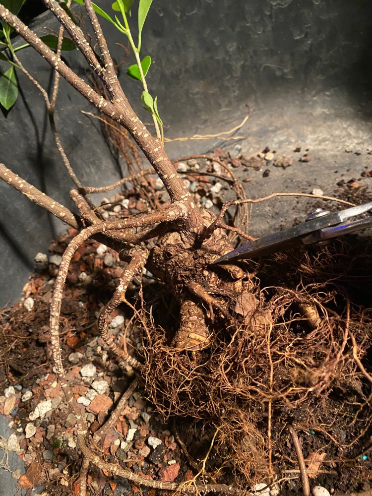 Now I’ll put it into a more shallow and wider pot to spread out those roots…