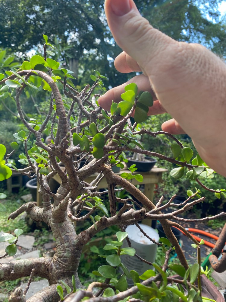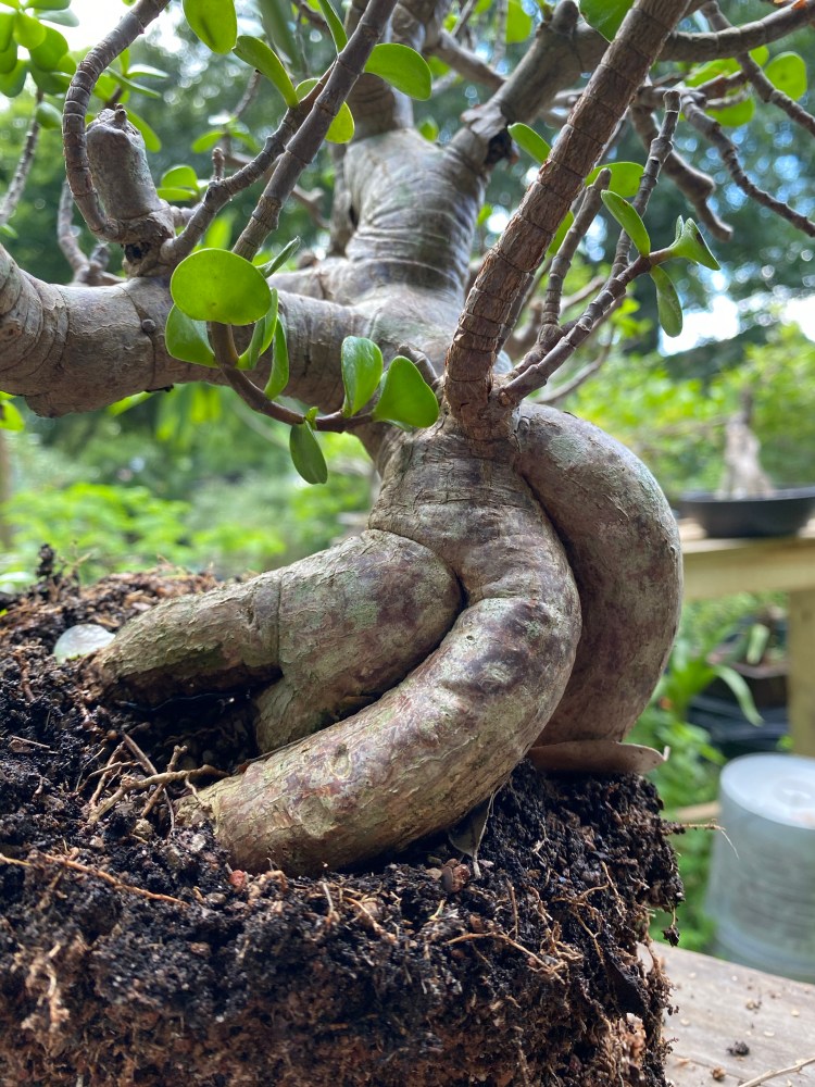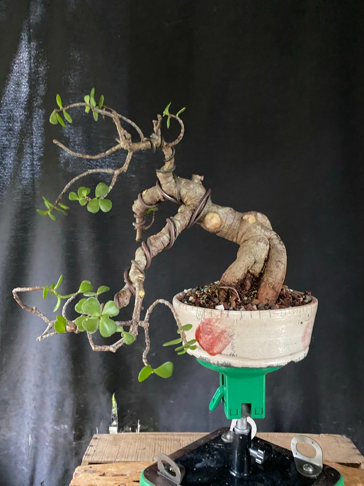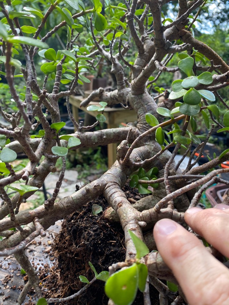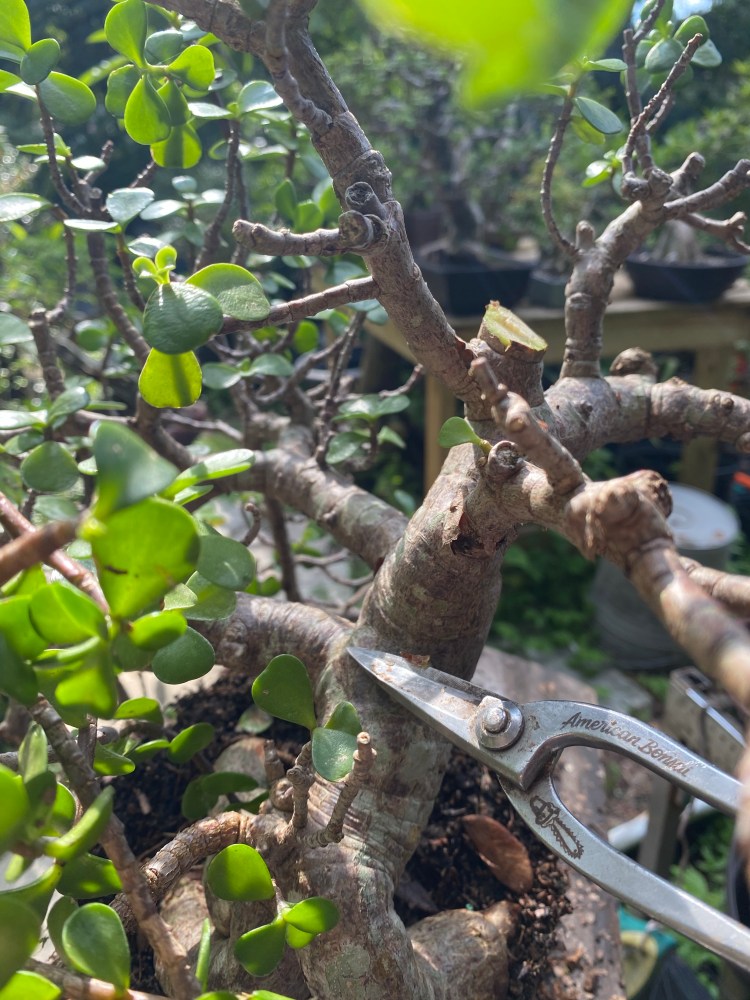 I’ll tend to let a tree grow freely for a season after the first heavy styling, just to let it recover and begin to store more energy, but a succulent like the Portulacaria has a great energy reserve. It’s evolved to survive elephants eating it so it needs to be able to regrow with not much left.