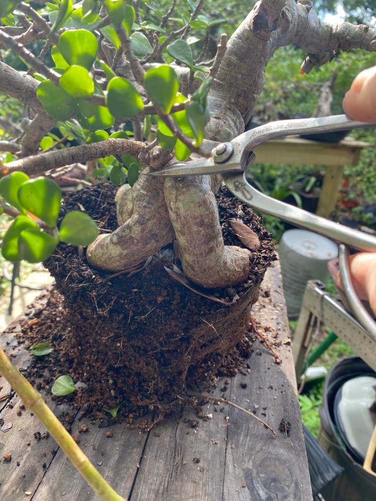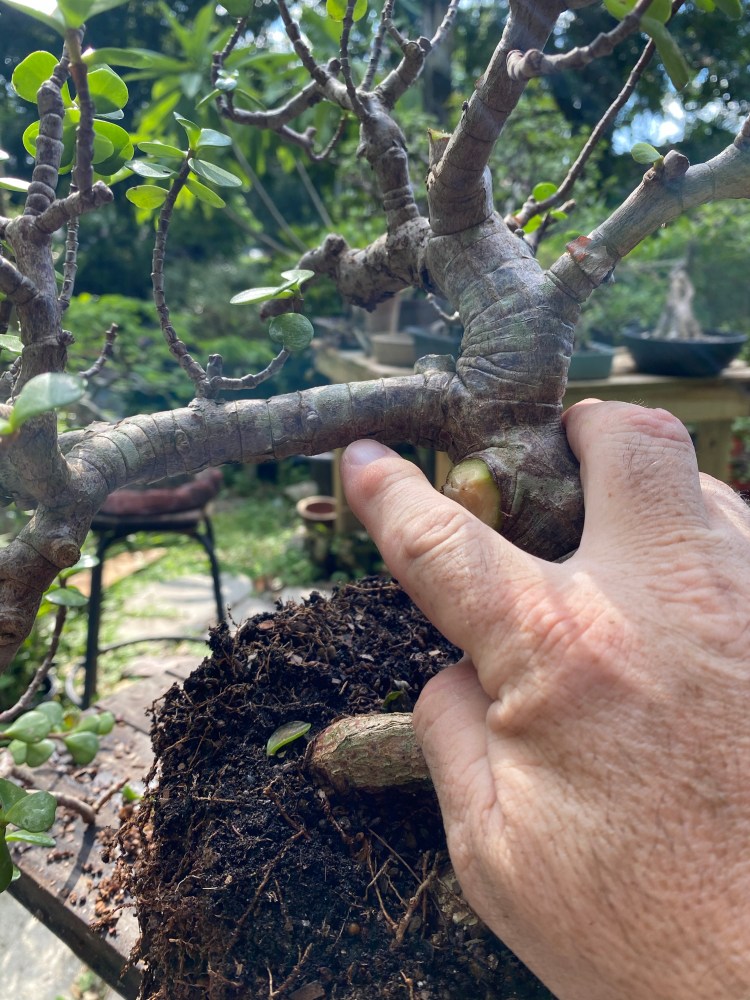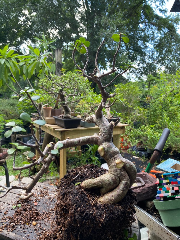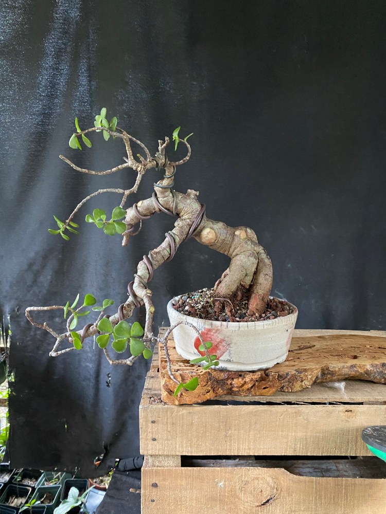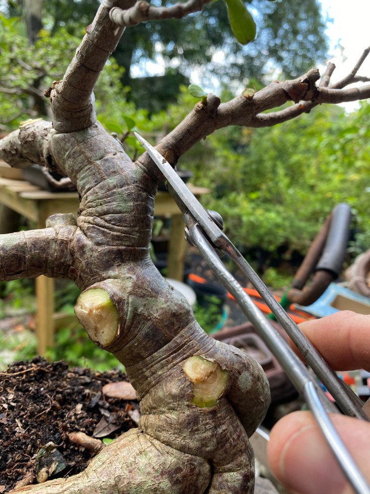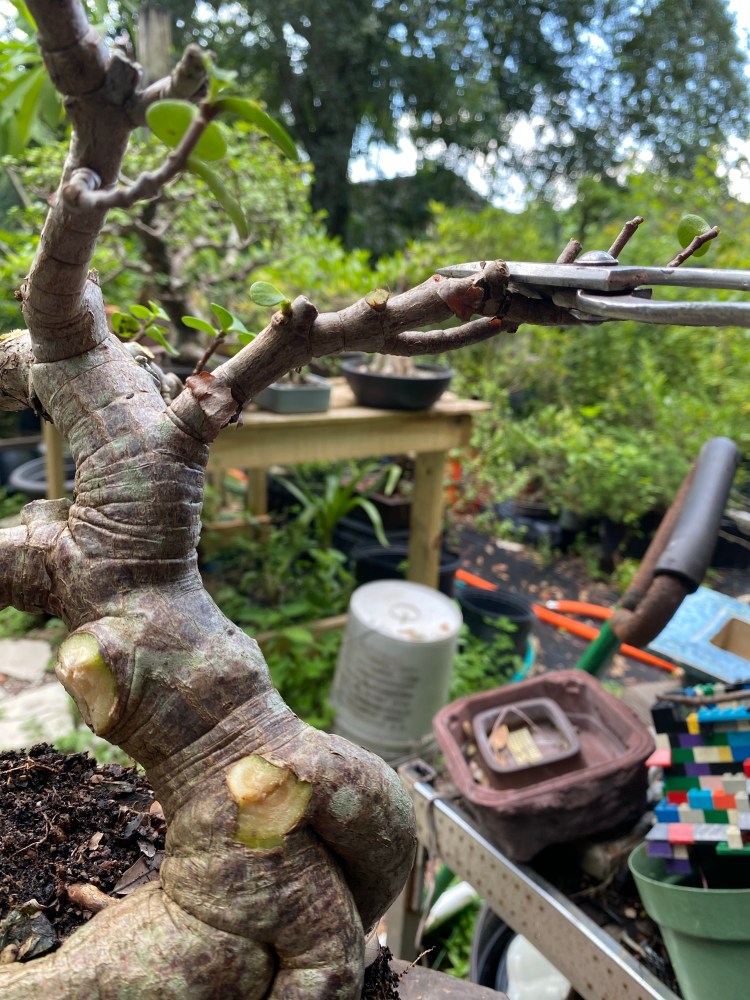 I’ll tend to let a tree grow freely for a season after the first heavy styling, just to let it recover and begin to store more energy, but a succulent like the Portulacaria has a great energy reserve. It’s evolved to survive elephants eating it so it needs to be able to regrow with not much left.