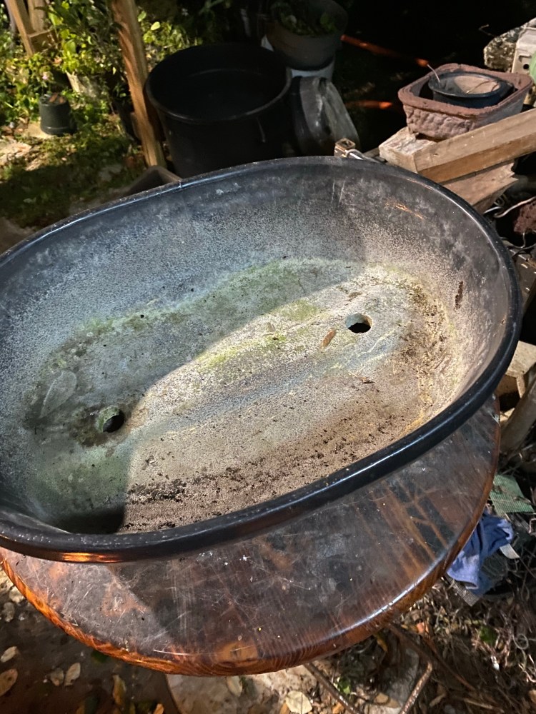 Kinda ugly, very cheap. Blue. But solidly built, and it will hold water. That’s the problem.