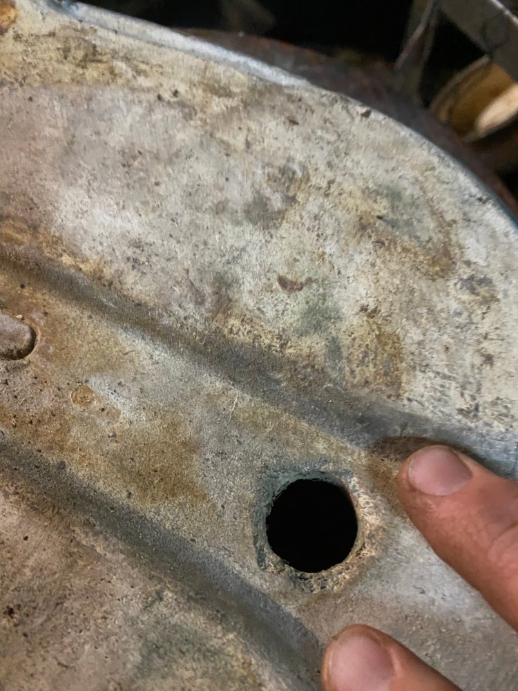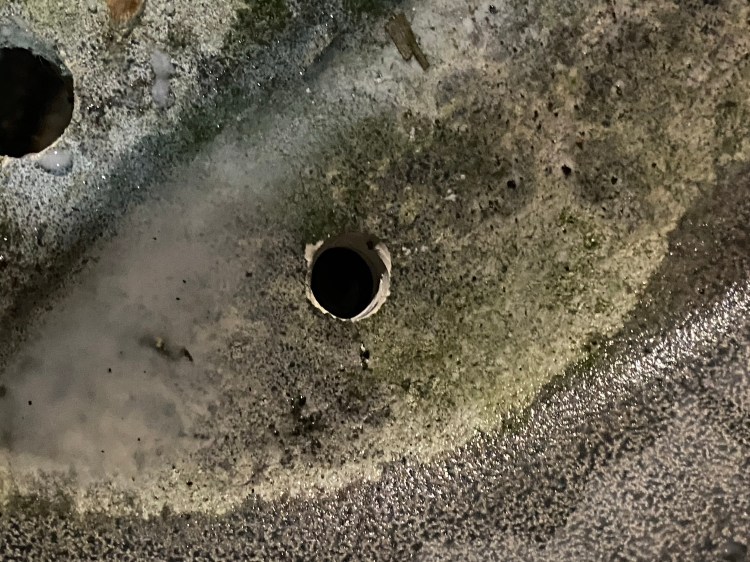 And the drain holes being where they are cause water to pool on each side of those holes. Like this: