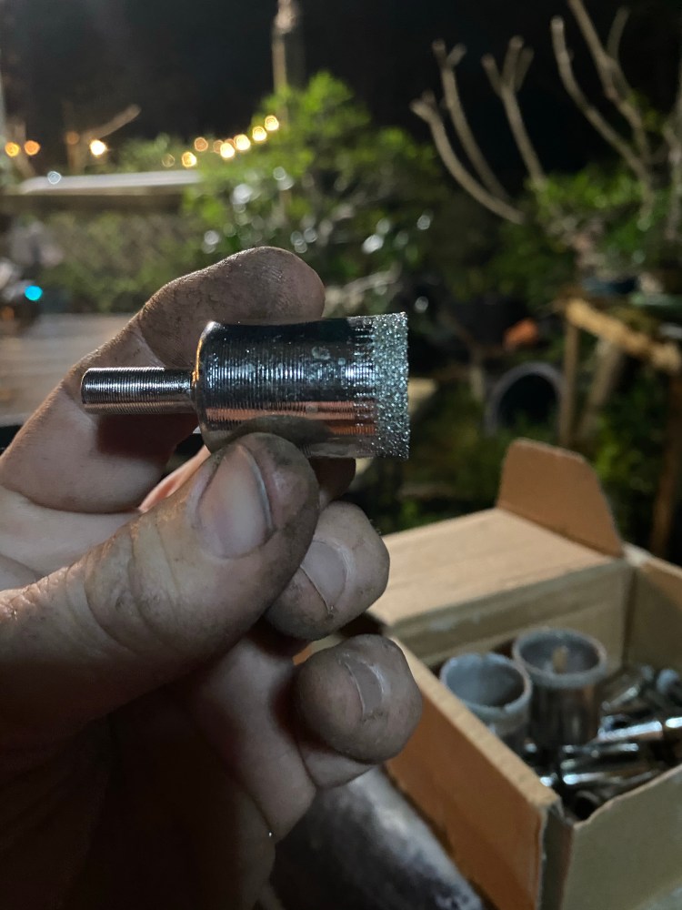 When I began in bonsai, that was a hard thing to do. We had masonry bits or concrete buys. Today, we have these amazing things called “diamond core drill bits”.