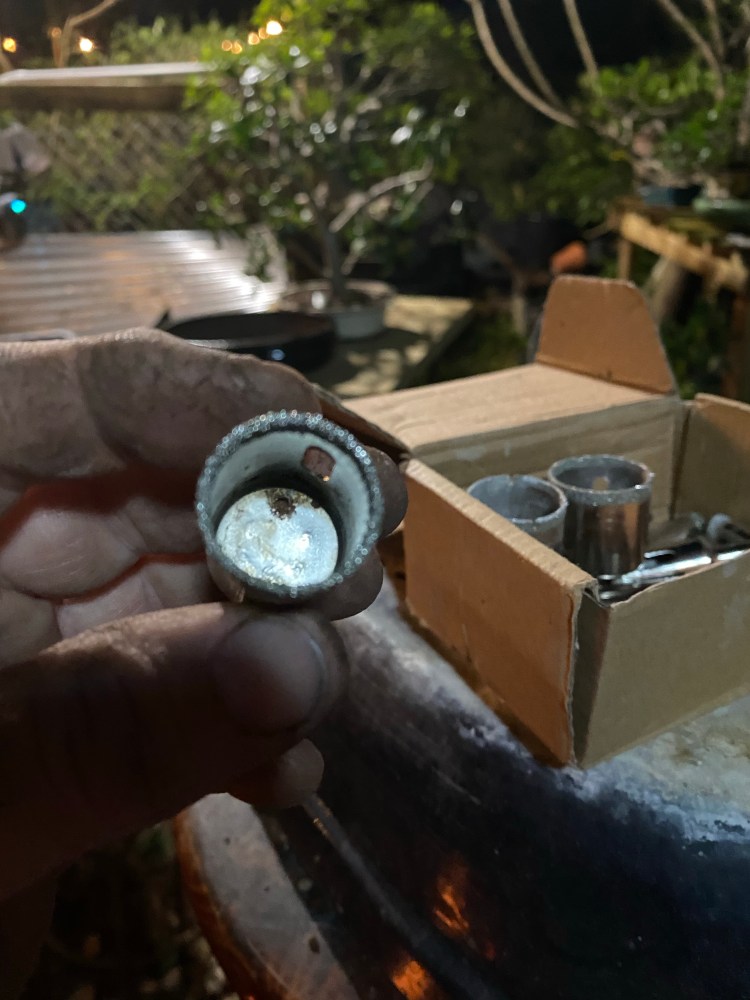 Amazingly, it took less than 30 seconds to cut through this pot, even though the thickness is about a half inch thick (see, there’s synchronicity in the 1/2 inch size…)