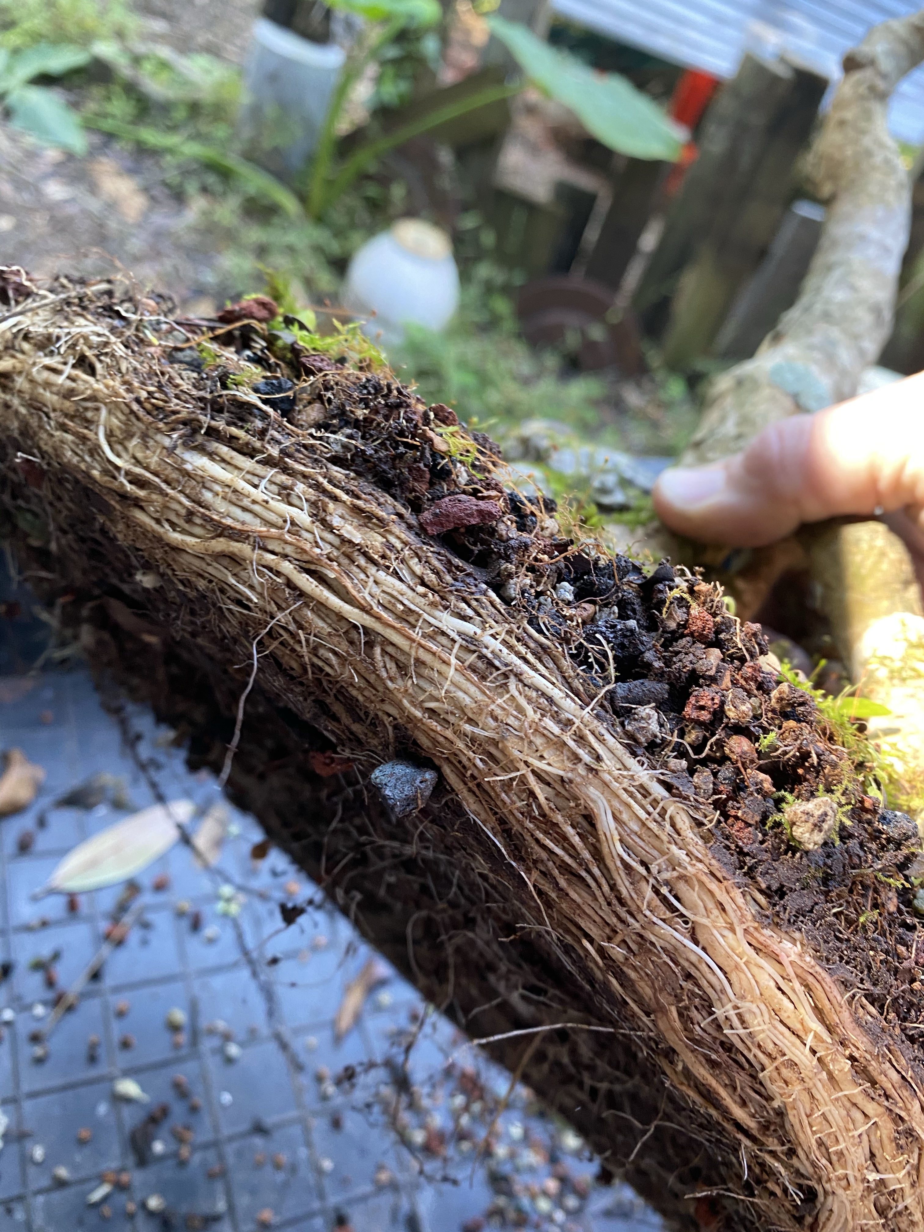The roots are kinda funky, as you can see, and that’s why there’s a rock stuck in them.